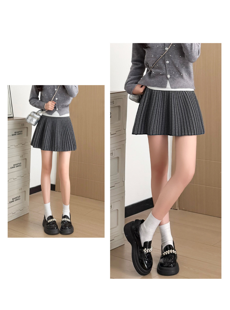 灰色百褶裙半身裙女春秋2026新款高腰显瘦羊毛小个子a字毛呢短裙