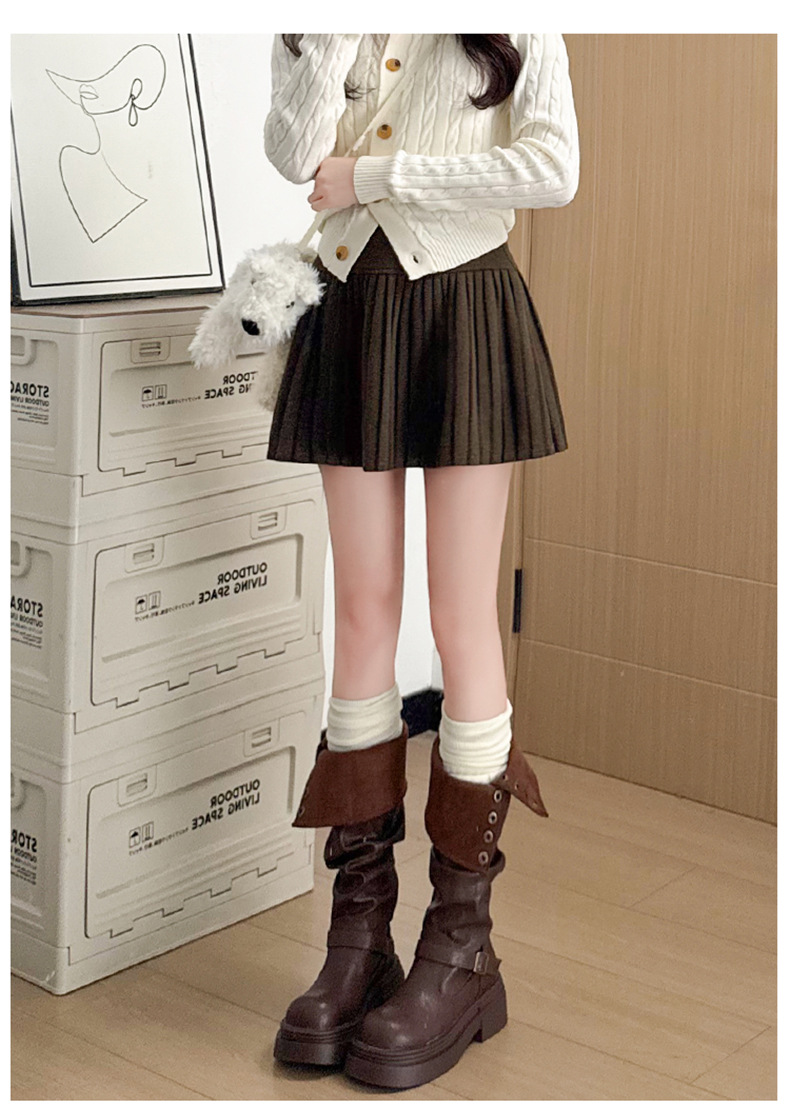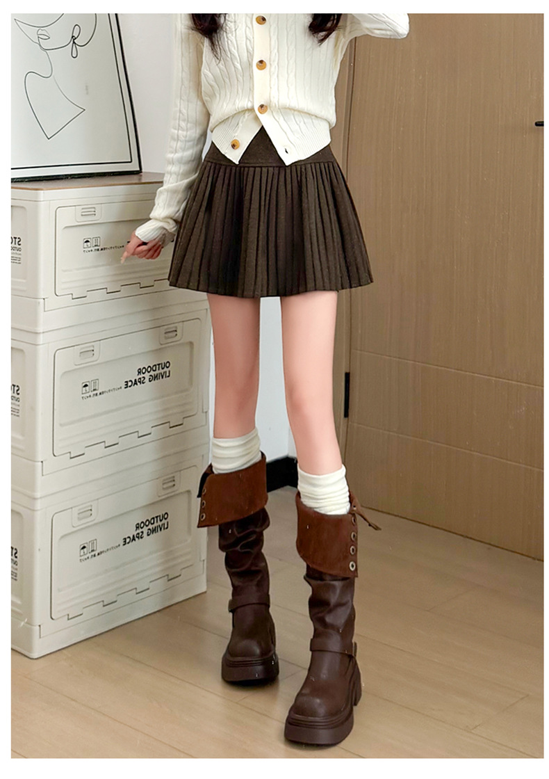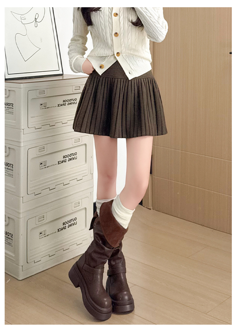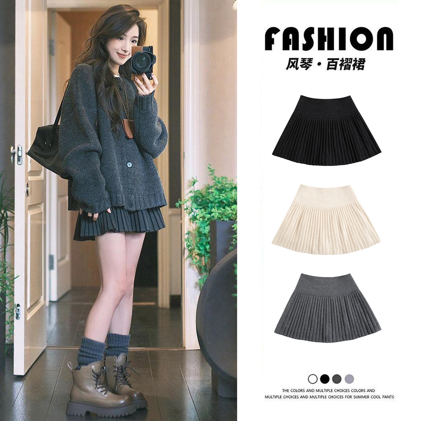 棕色羊毛百褶裙女2026新款秋冬a字jk短裙高腰垂感针织毛呢半身裙