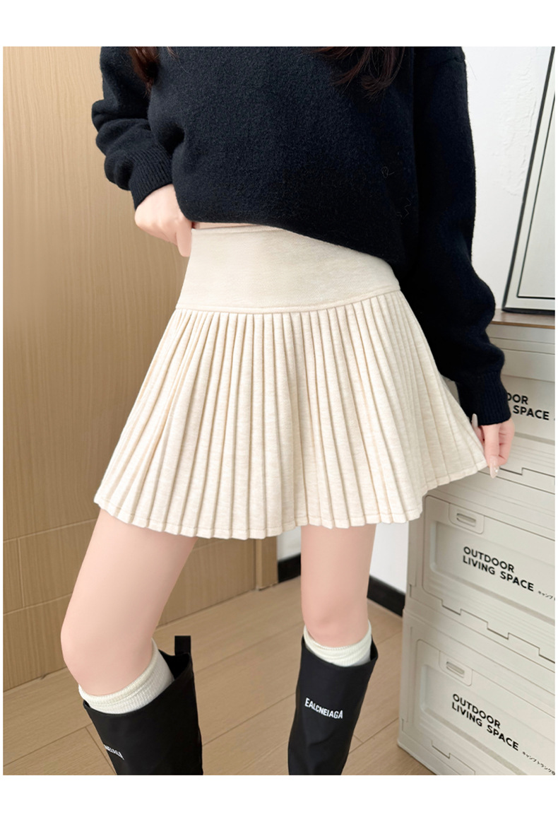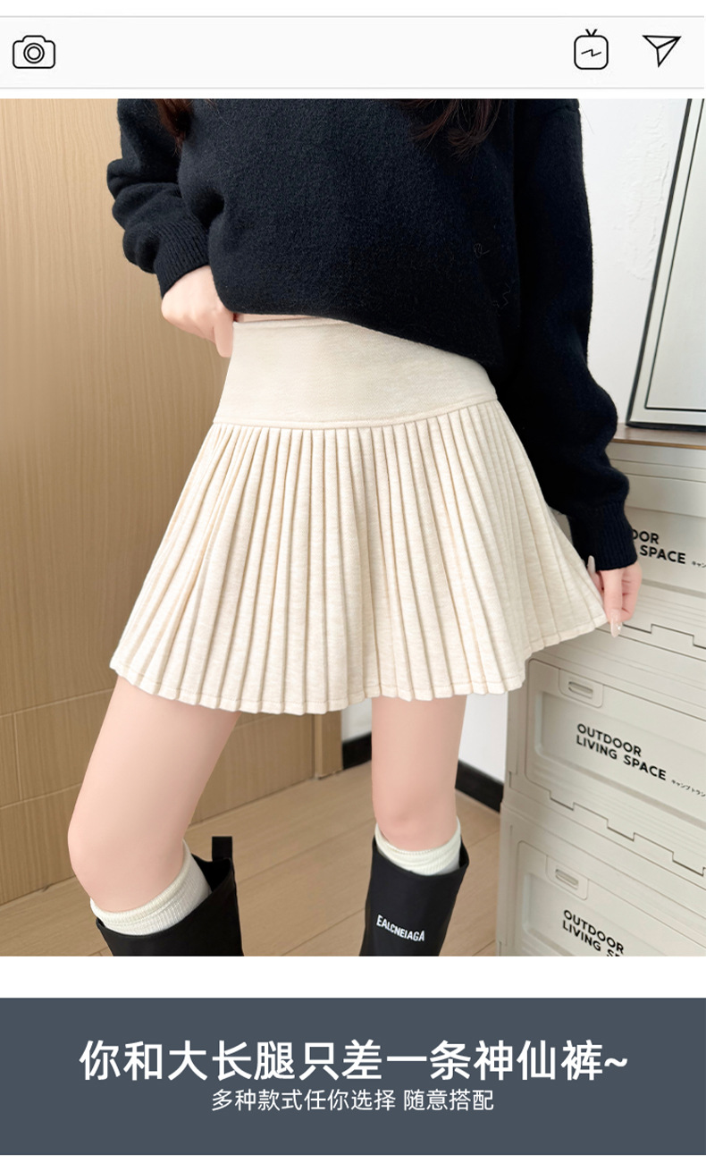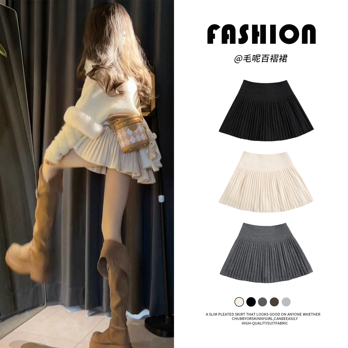 白色毛呢百褶裙女秋冬2026新款高腰a字半身裙jk梨形伯克利短裙子
