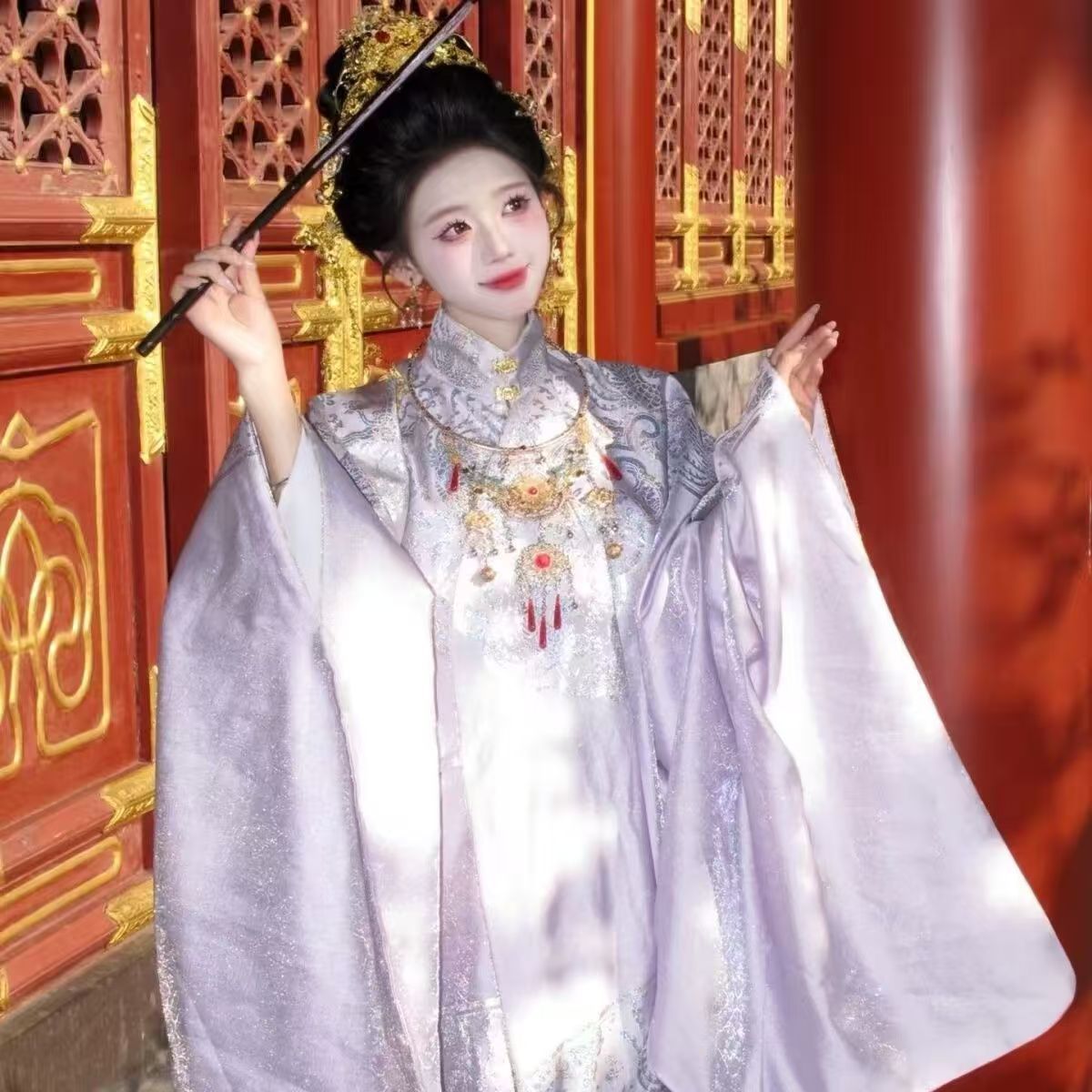 明制汉服套装女宫廷风立领重工春秋古装织金套装古风对襟衫马面裙