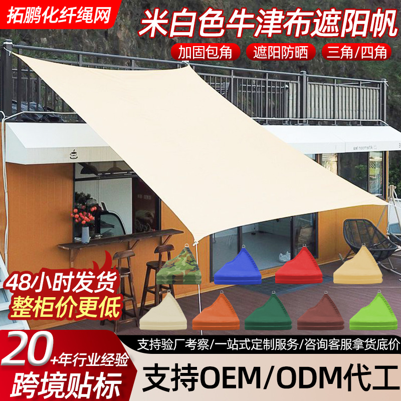 米白色牛津布遮阳帆防水遮阳布泳池露营户外三角/四角遮阳天幕