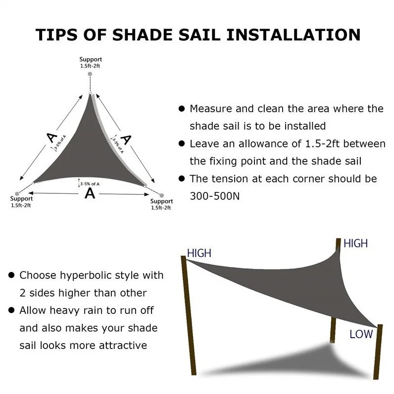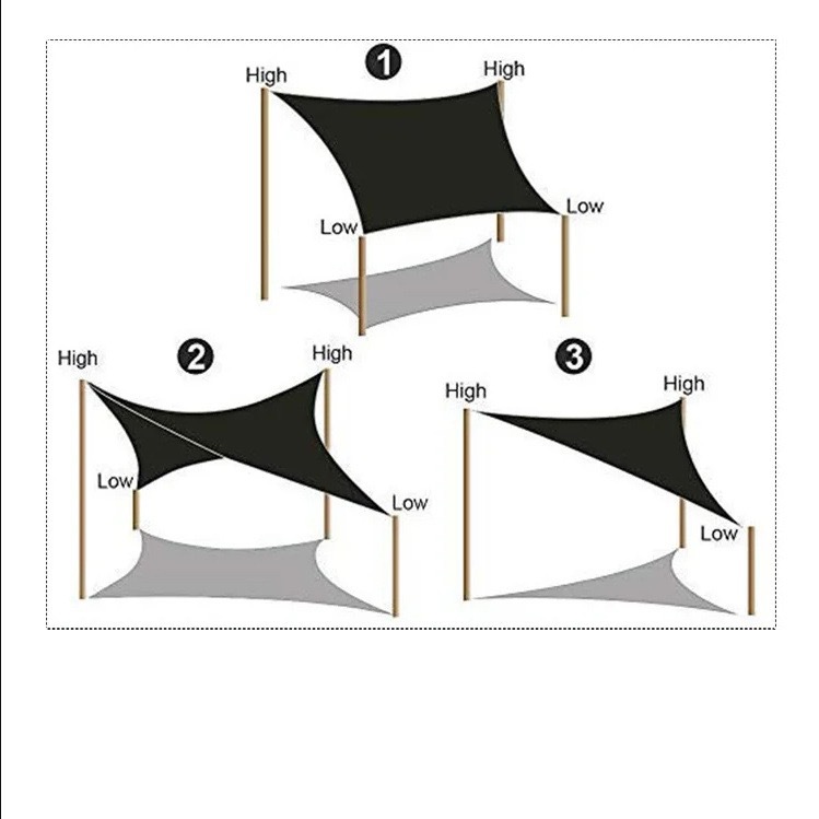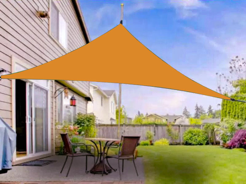 屋外三角天幕、屋外庭園・バルコニー用日よけ・遮光帆、銀コーティング日よけ、景観用雨よけ、防雨