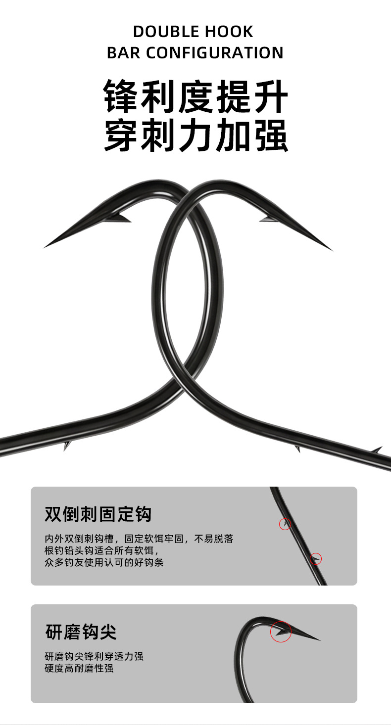 50个装X1X4加强根钓铅头钩路亚微物加强软饵钓鳜鱼鲈鱼翘嘴跟钓勾