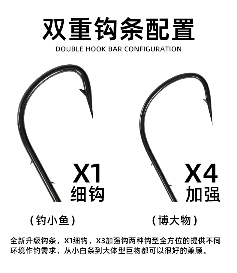 规格 压铸X1细钩1.5g【1枚】,压铸X1细钩2.5g【1枚】,压铸X1细钩3.5g【1枚】,压铸X1细钩4.5g【1枚】,压铸X1细钩5.5g【1枚】,压铸X1细钩6.5g【1枚】,压铸X4加强1.5g【1枚】,压铸X4加强2.5g【1枚】,压铸X4加强3.5g【1枚】,压铸X4加强4.5g【1枚】,压铸X4加强5.5g【1枚】,压铸X4加强6.5g【1枚】
