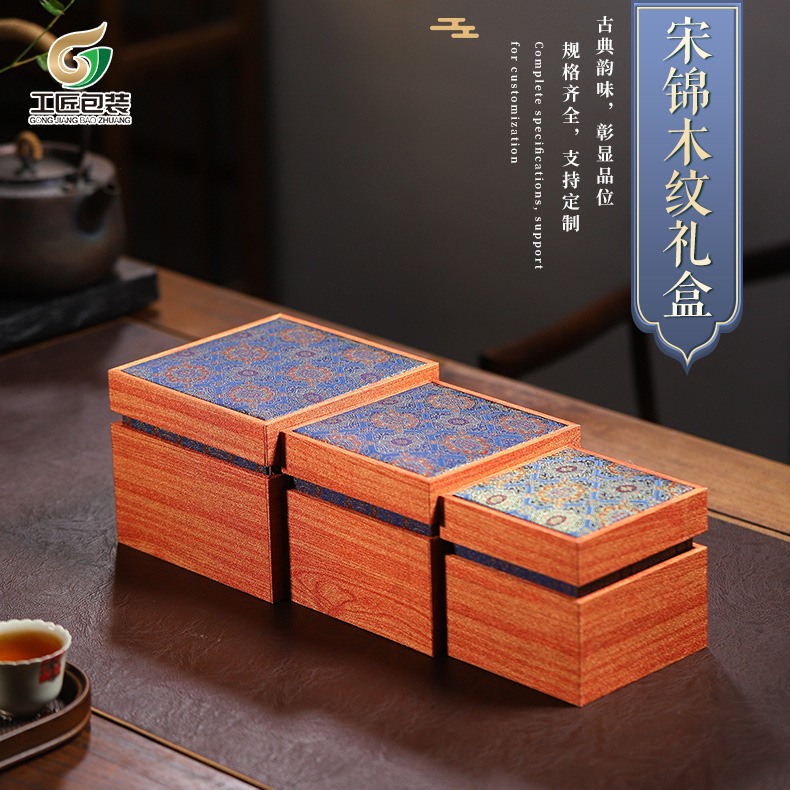 宋锦木纹锦盒建盏紫砂壶茶杯盖碗锦盒空盒高档收纳礼品盒批发