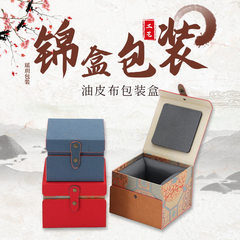 油皮布包装盒无锡复古新中式文玩首饰礼品收纳盒紫砂壶茶杯包装盒