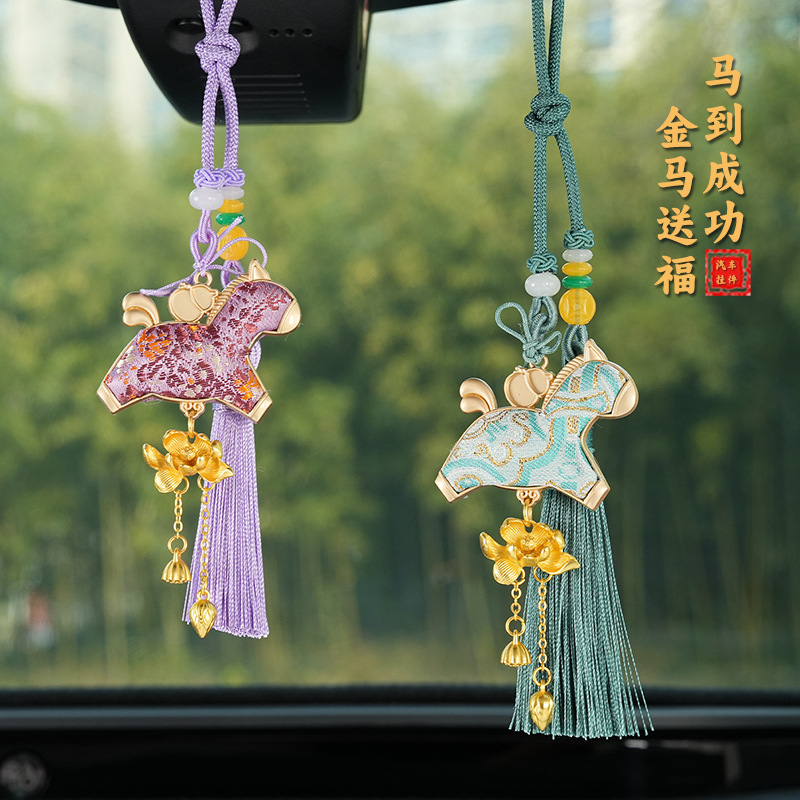 2026马年汽车挂件国风新年小马车载后视镜装饰吊坠车挂饰新年礼物