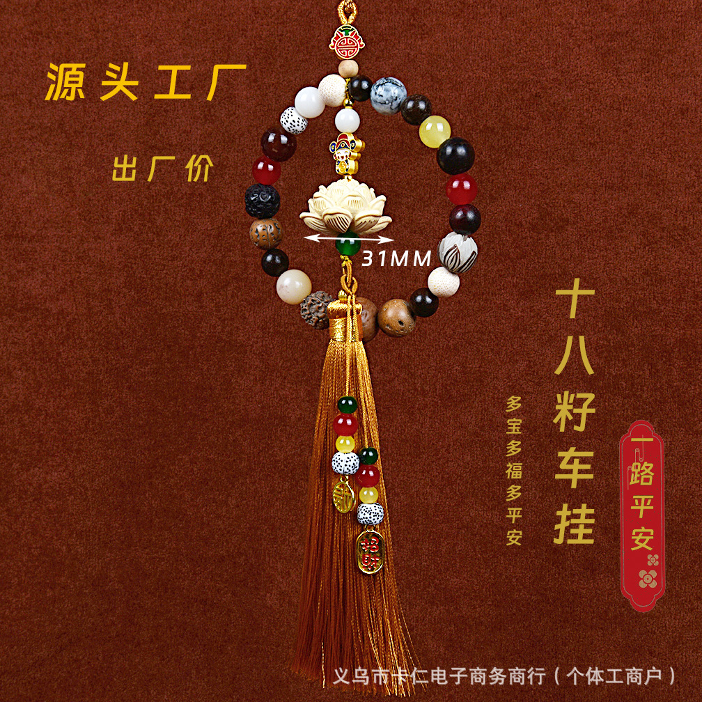十八籽汽车挂件保平安寺庙同款车载高级感菩提十八子多宝佛珠车内