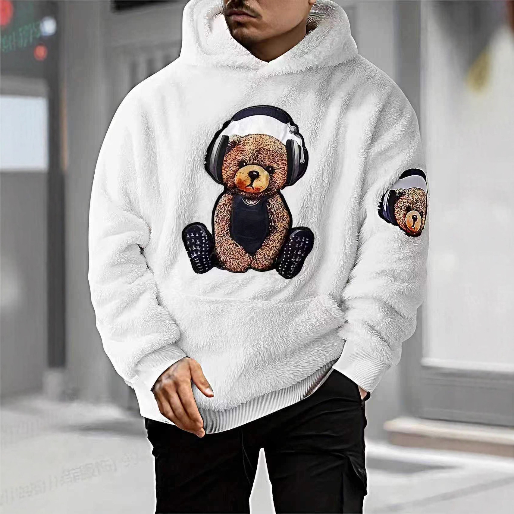 2025跨境男装男士秋冬加绒加厚爆款连帽小熊美式潮牌temu shein