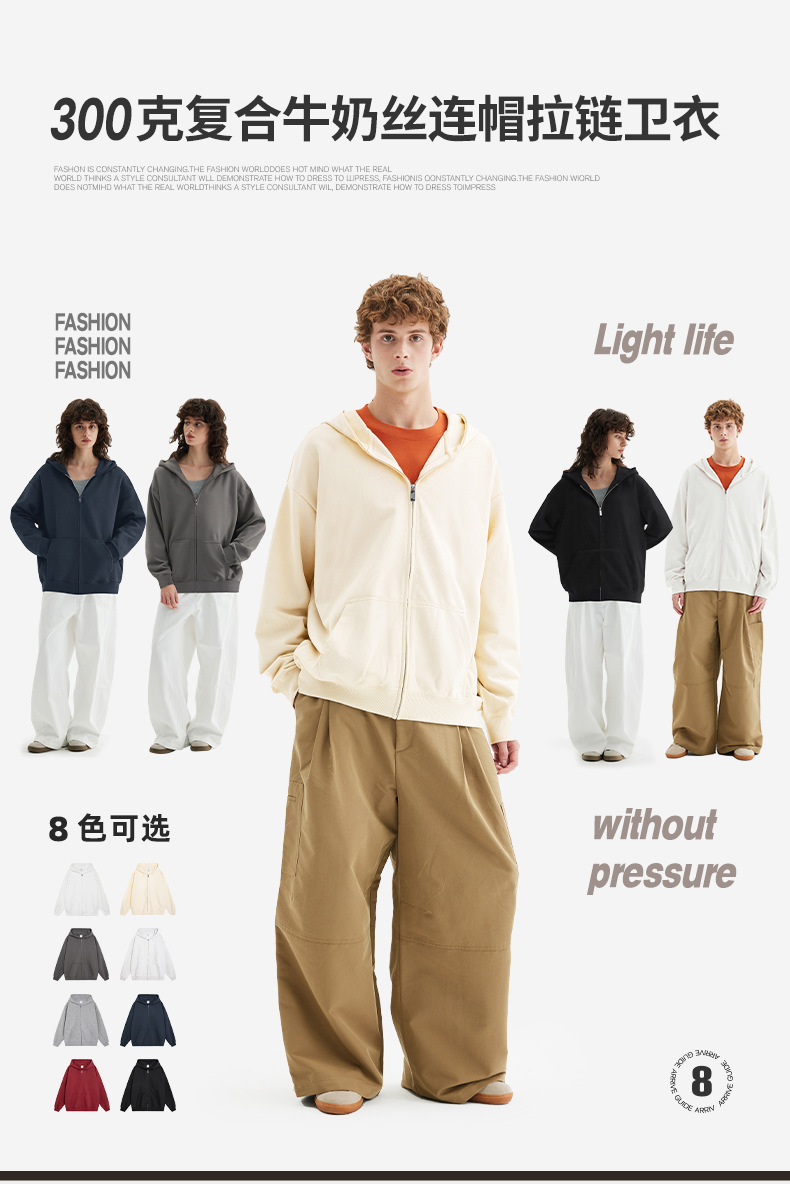 300克秋冬复核牛奶丝拉链卫衣印字印logo纯色班服工作服团体服