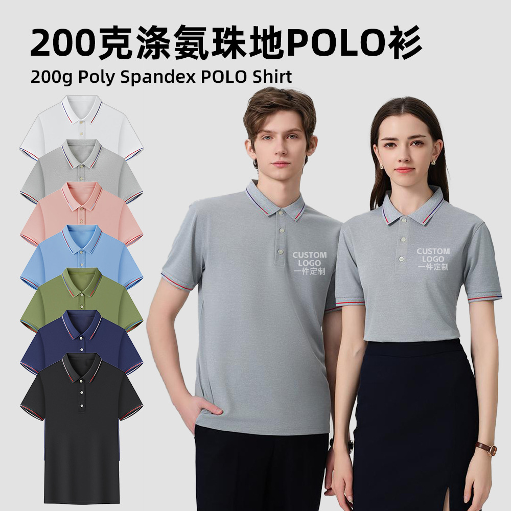 夏用涼感ポリウレタン混紡、コントラストカラー襟付きポロシャツ、ニットプリント加工、広告用シャツ、作業服、ロゴのカスタム印刷