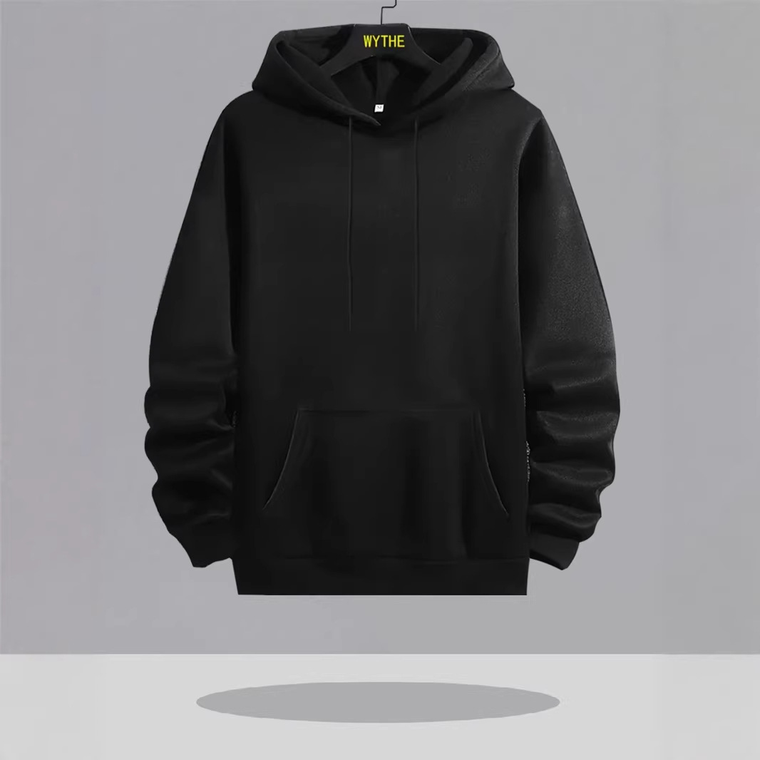 2025新款纯色连帽套头休闲卫衣空白男士卫衣加绒套头套装潮流