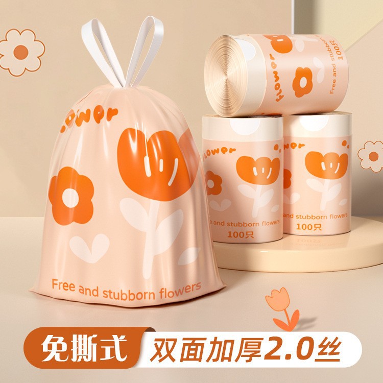 抽绳式垃圾袋家用加厚宿舍塑料袋厨房收口大号印花手提式垃圾袋