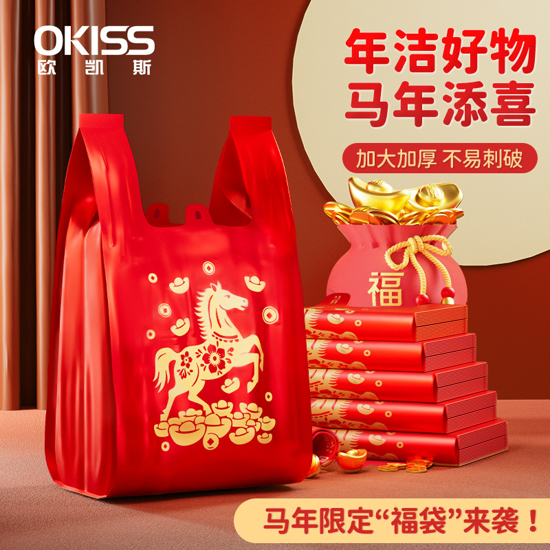 厨房免斯垃圾袋家用背心式加厚不易破客厅办公室用马年添喜马甲袋