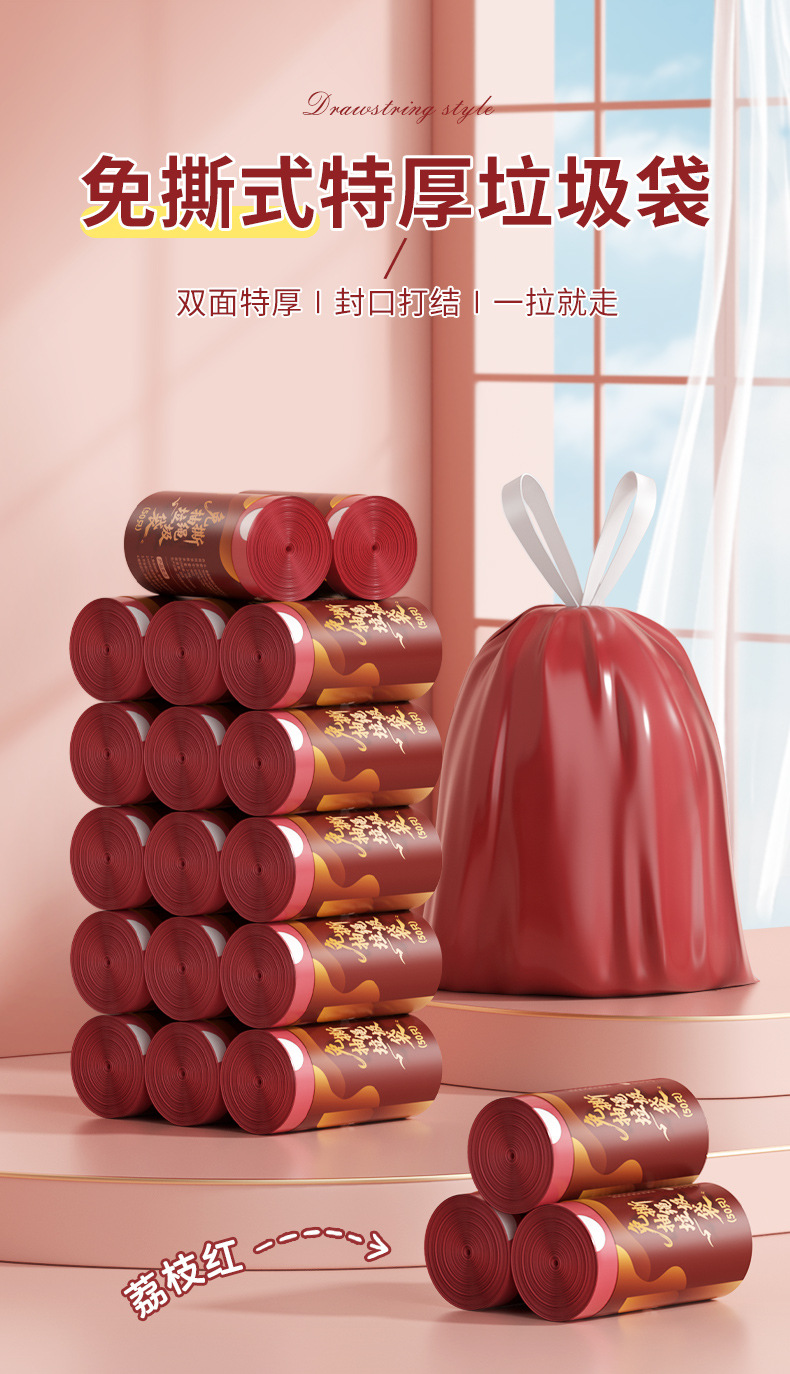免撕抽绳垃圾袋家用加厚不易破宿舍用学生自动收口马年塑料垃圾袋