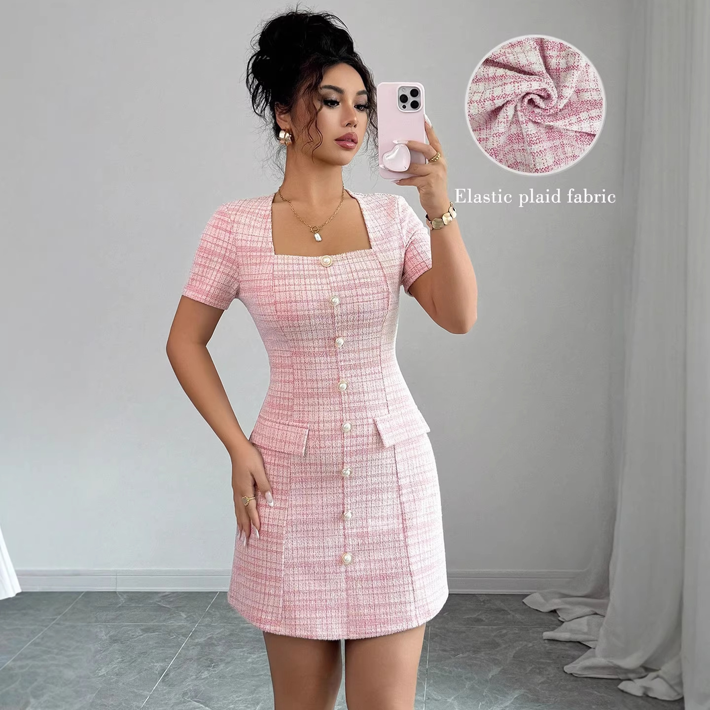 跨境欧美2026春季新品包臀连衣裙女装气质通勤