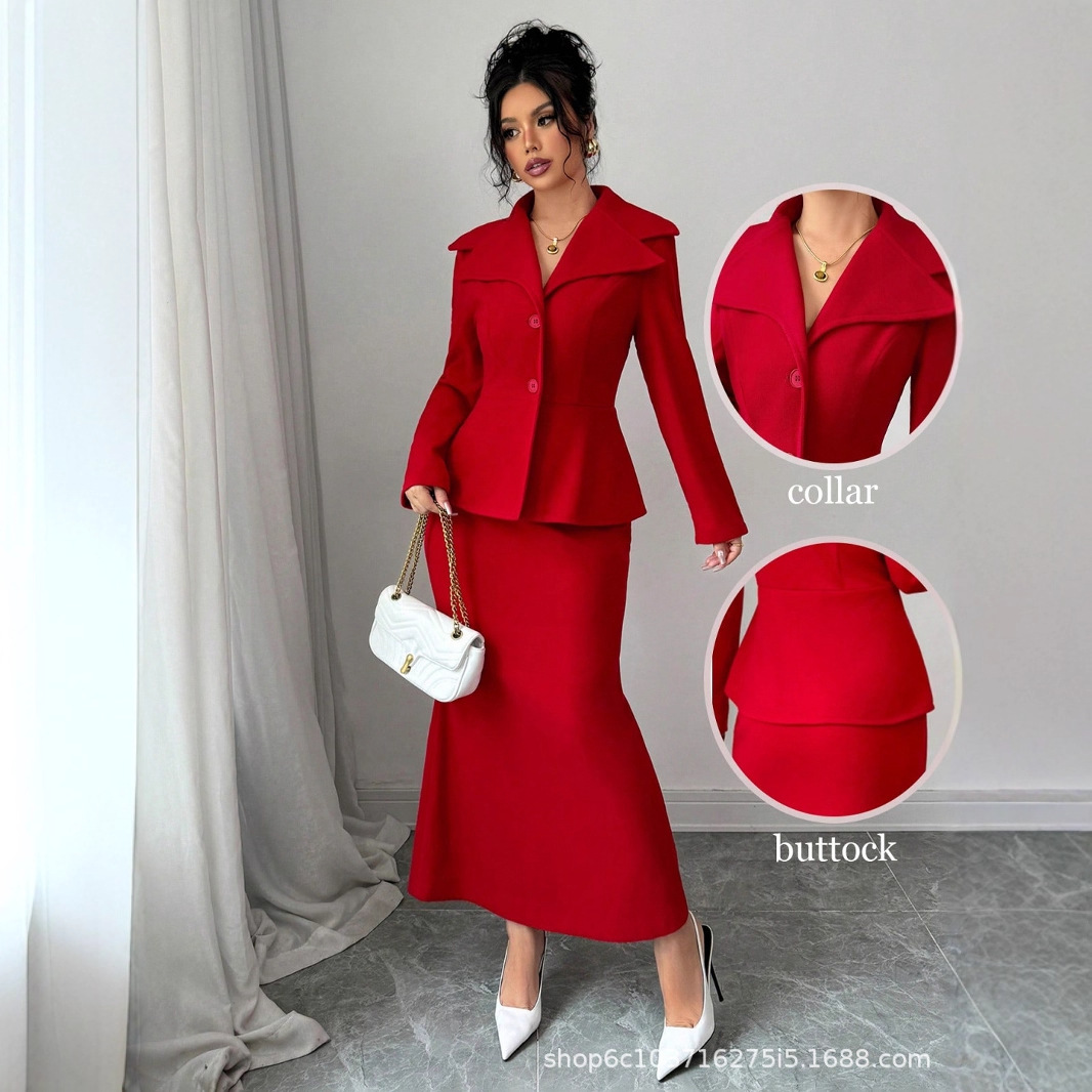 欧米風クロスボーダーレディースウェア2025秋新作オフィススーツワンピース気質のあるワークウェア