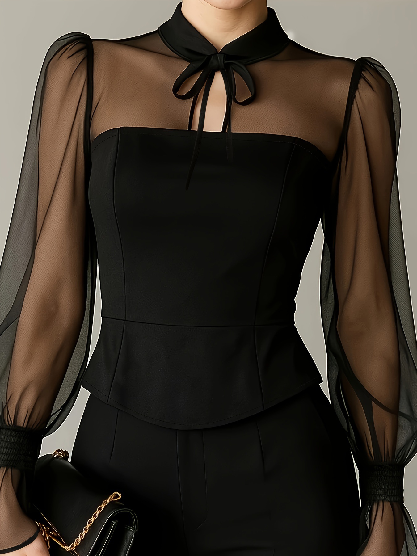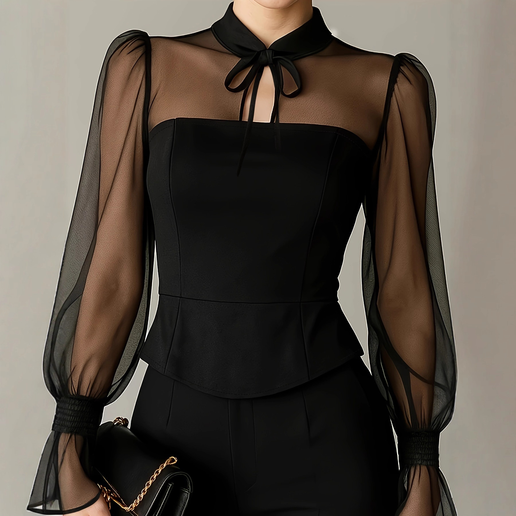 欧美跨境女装设计感 2025秋季新款法式收腰蝴蝶结拼接优雅气质衬