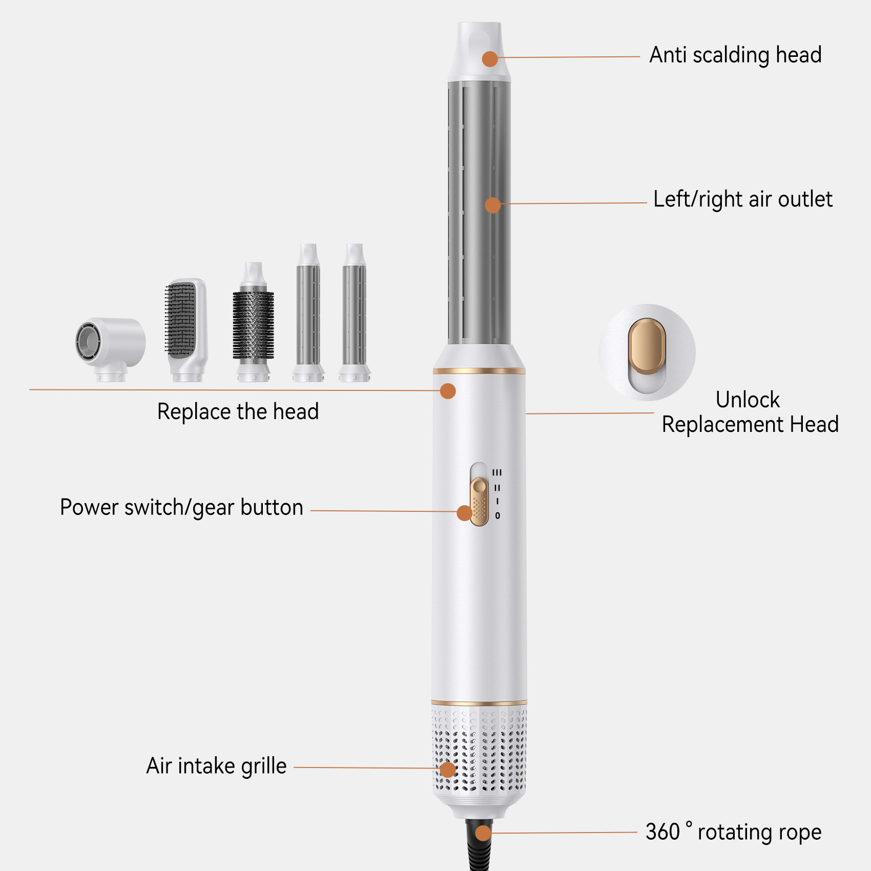 国境を越えた新作熱風コーム、5in1多機能エアカーリングアイロン、画面表示付きヘアドライヤー、ストレートヘアスタイリングヘアドライヤー