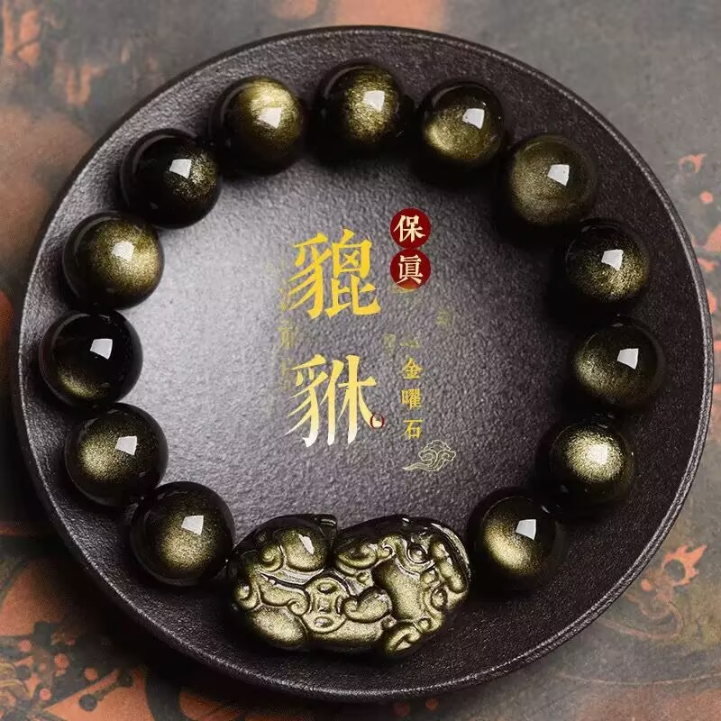 正品天然金曜石黑曜石貔貅手串手链男女款佛珠中国风跨境外贸