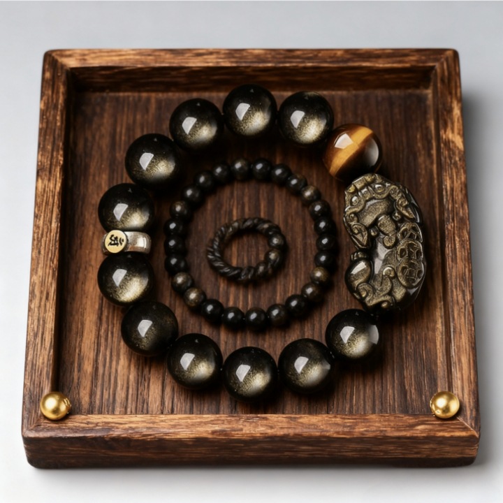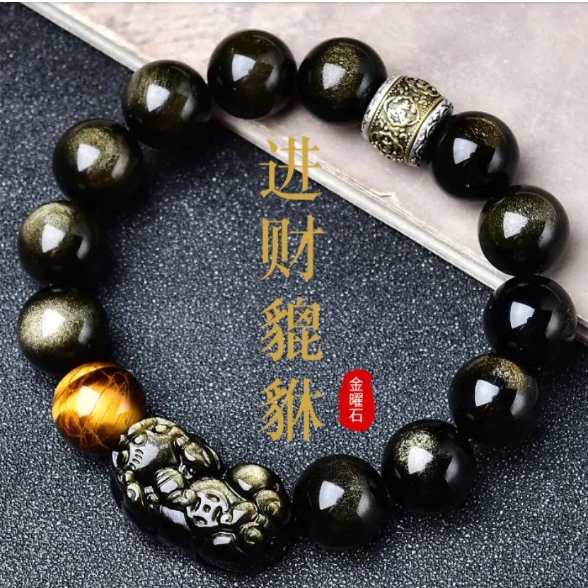 普陀寺景区淘宝同款金曜石貔貅手串 男性用黒曜石 男性用ギフト 屋台卸売