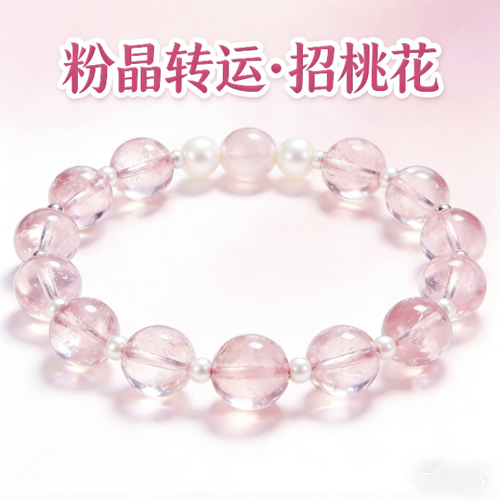 天然ピンク水晶ブレスレット風ビーズ、シンプルで甘い桃の花ビーズのジュエリー、女性らしい爽やかな気質、卸売