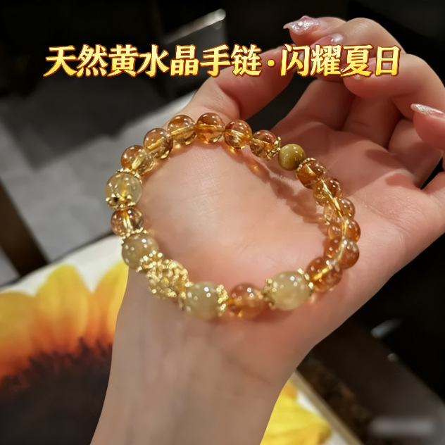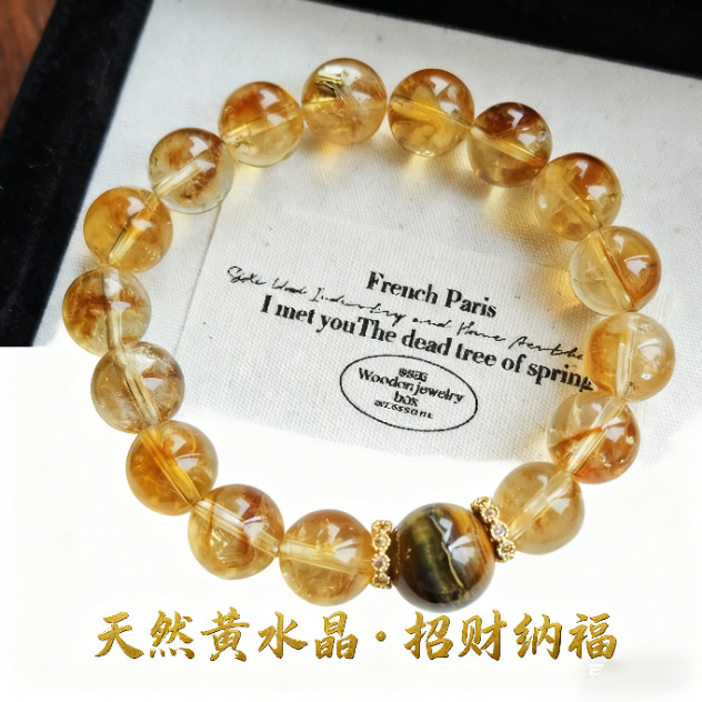 天然シトリンブレスレット、ゴールデンクォーツビーズ、タイガーアイストーン、軽奢で高級感のあるビーズ、ニッチデザイン、ハンドメイド
