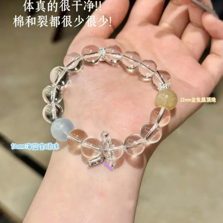 天然ホワイトクリスタル、アクアマリン、ゴールデンクリスタルのブレスレット、女性へのギフト、親友へのプレゼント、ジュエリーブレスレット、卸売ビーズ