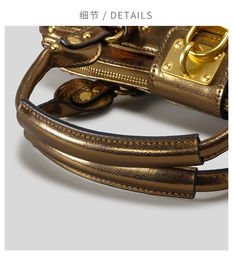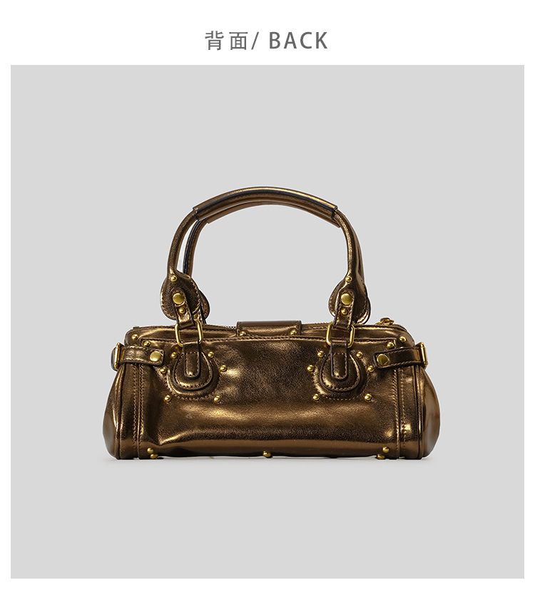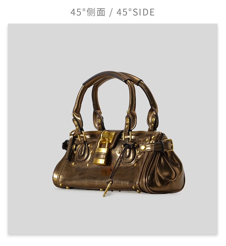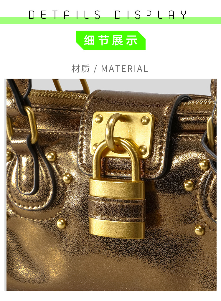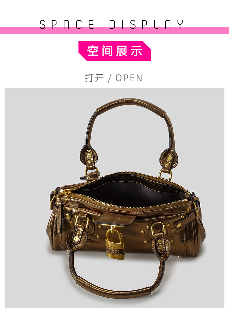 欧美复古做旧锁头铆钉机车包2025新款波士顿手提包千禧辣妹hobo包