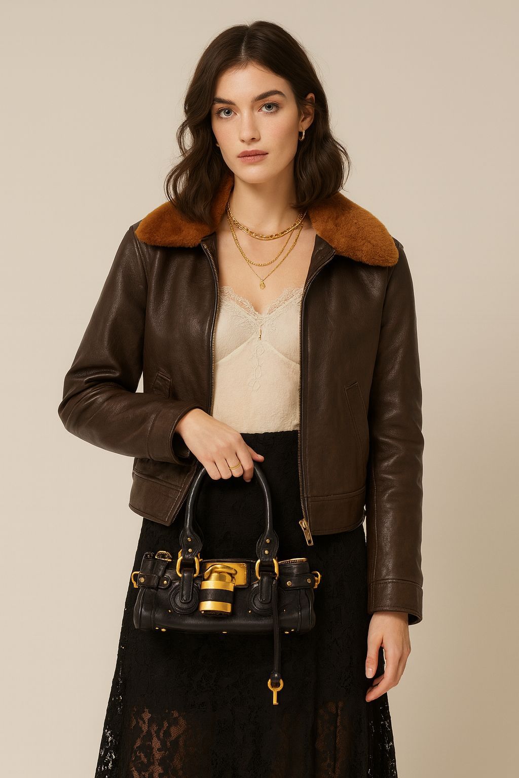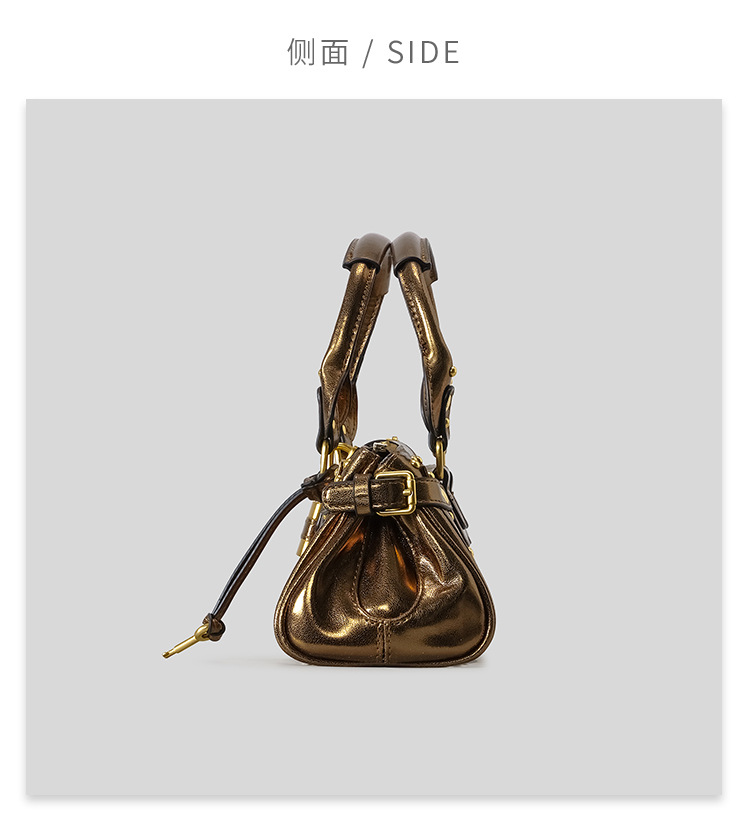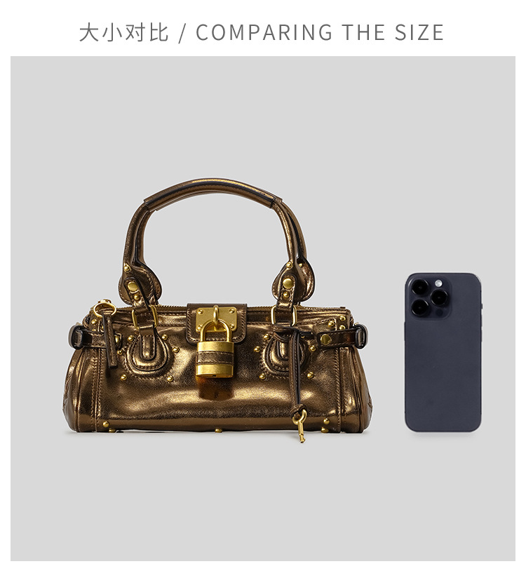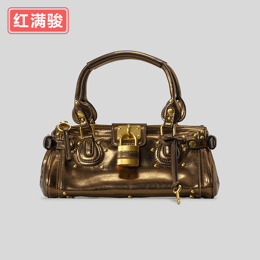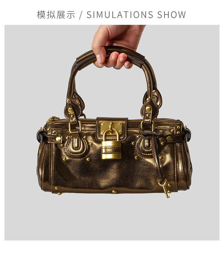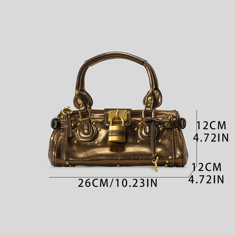 中古风复古百搭锁头包2026新款小号铆钉枕头包时尚经典手提包女