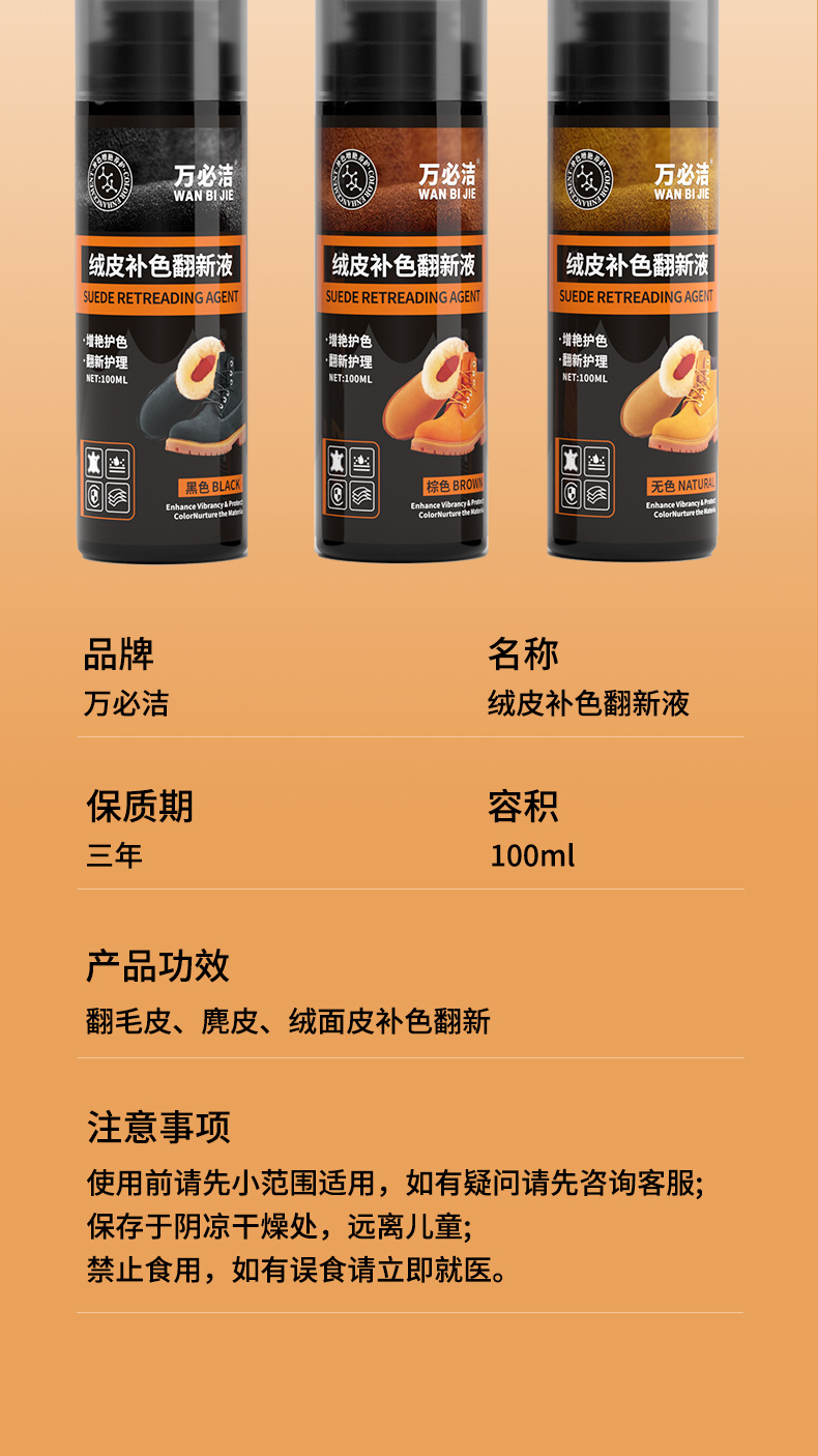 万必洁100mL绒皮翻新剂翻毛皮反毛绒面鞋雪地靴补色护理液厂家批