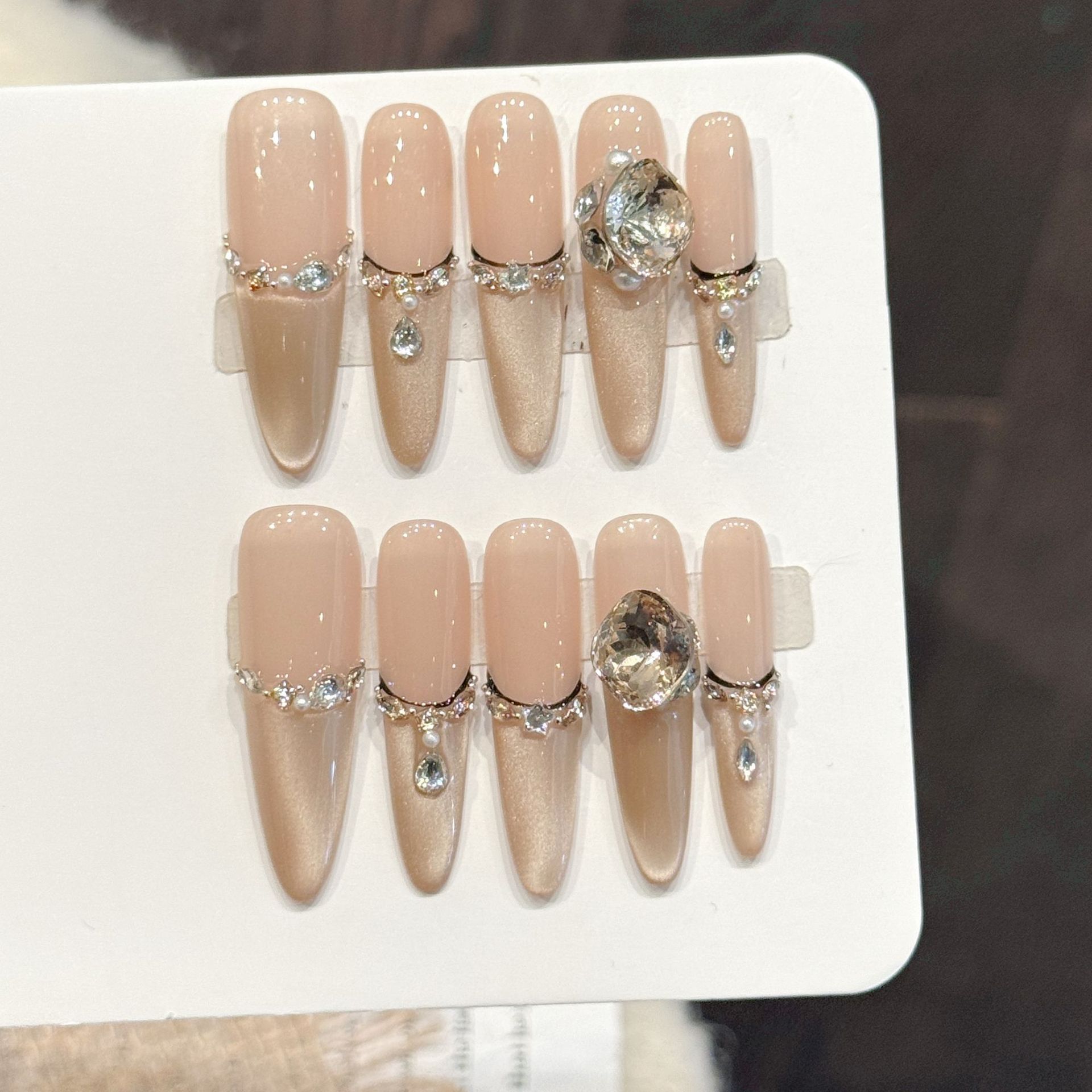 艺禾原创【裸钻流光】裸色渐变大钻饰纹手工穿戴甲高级感美甲贴片