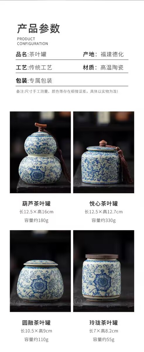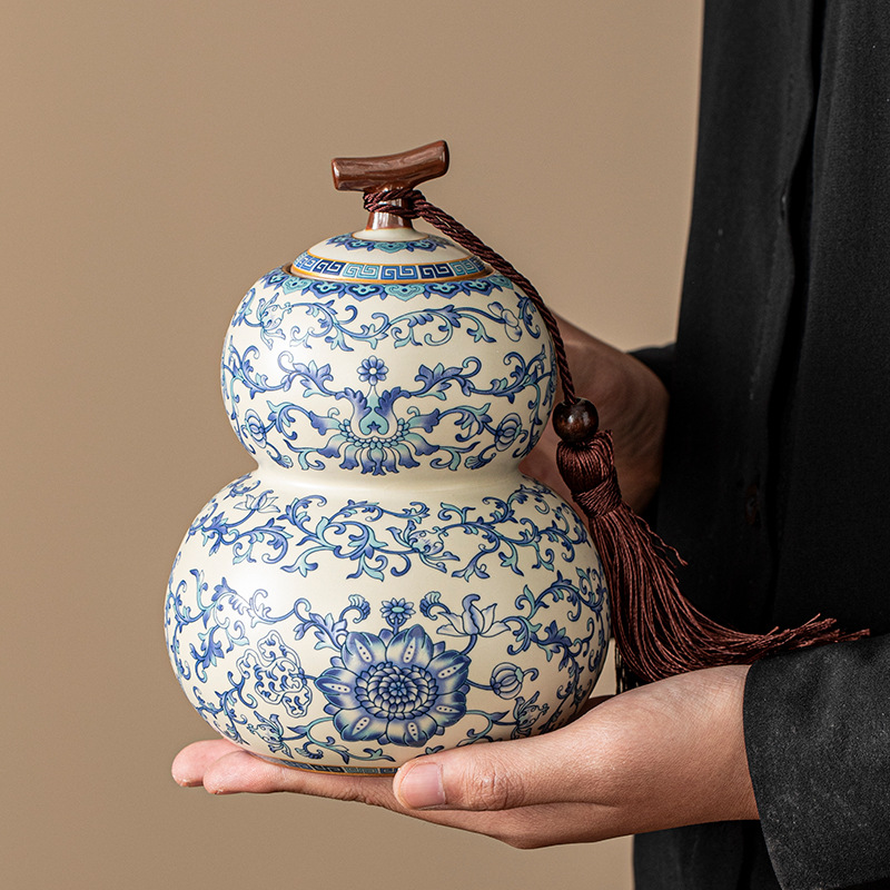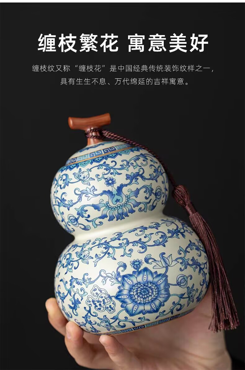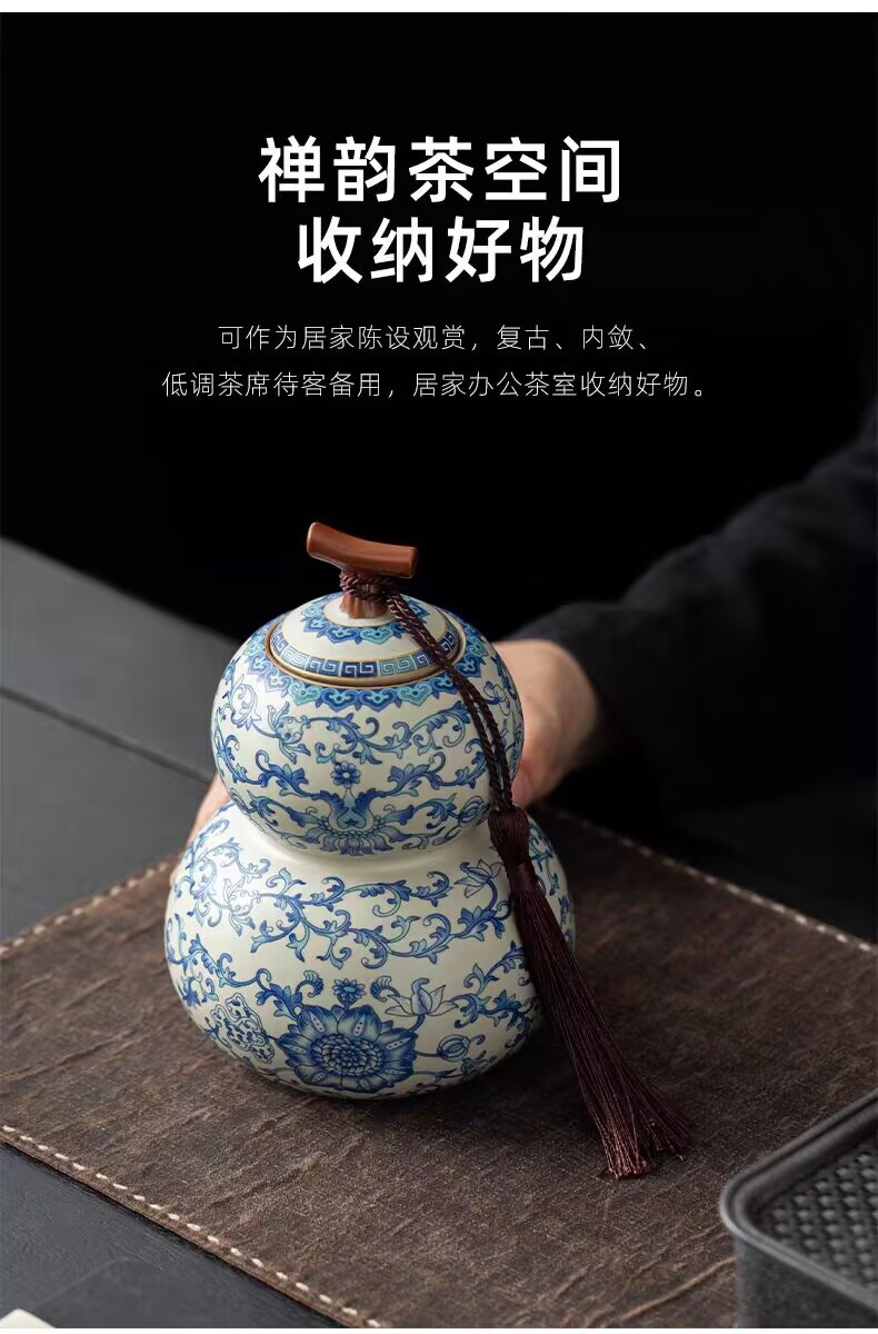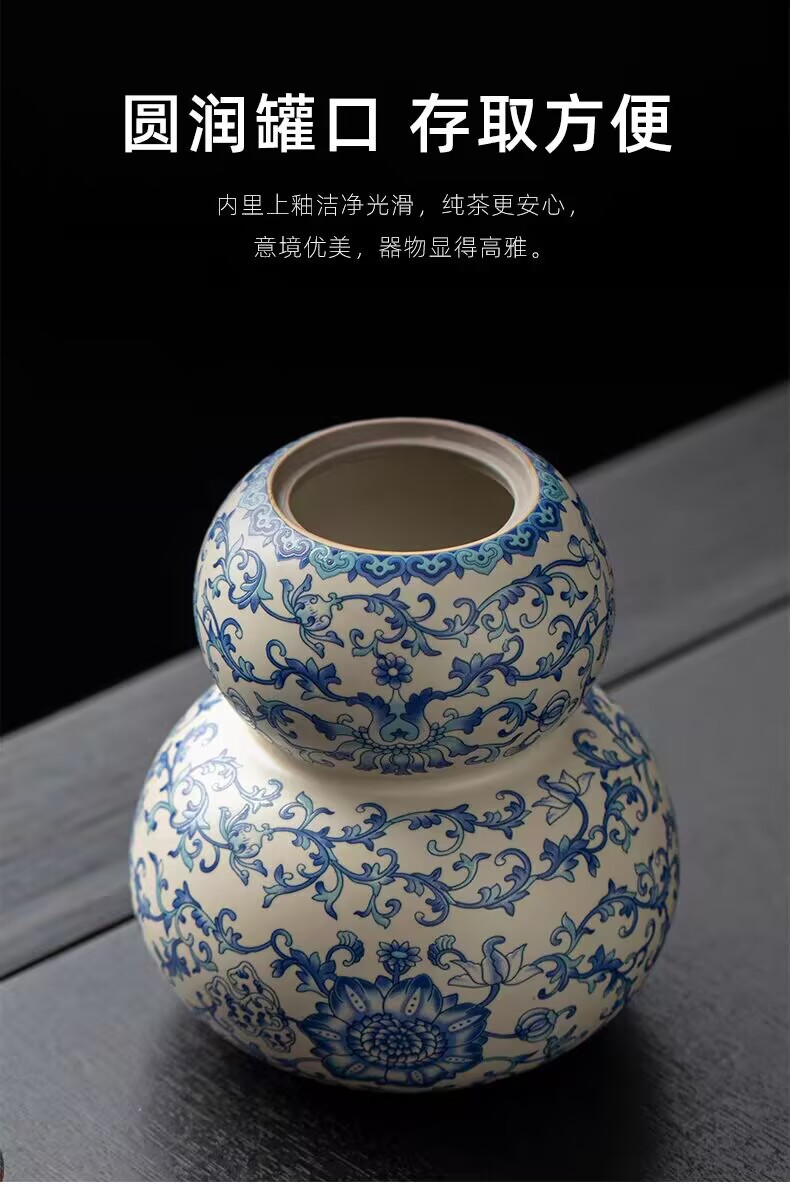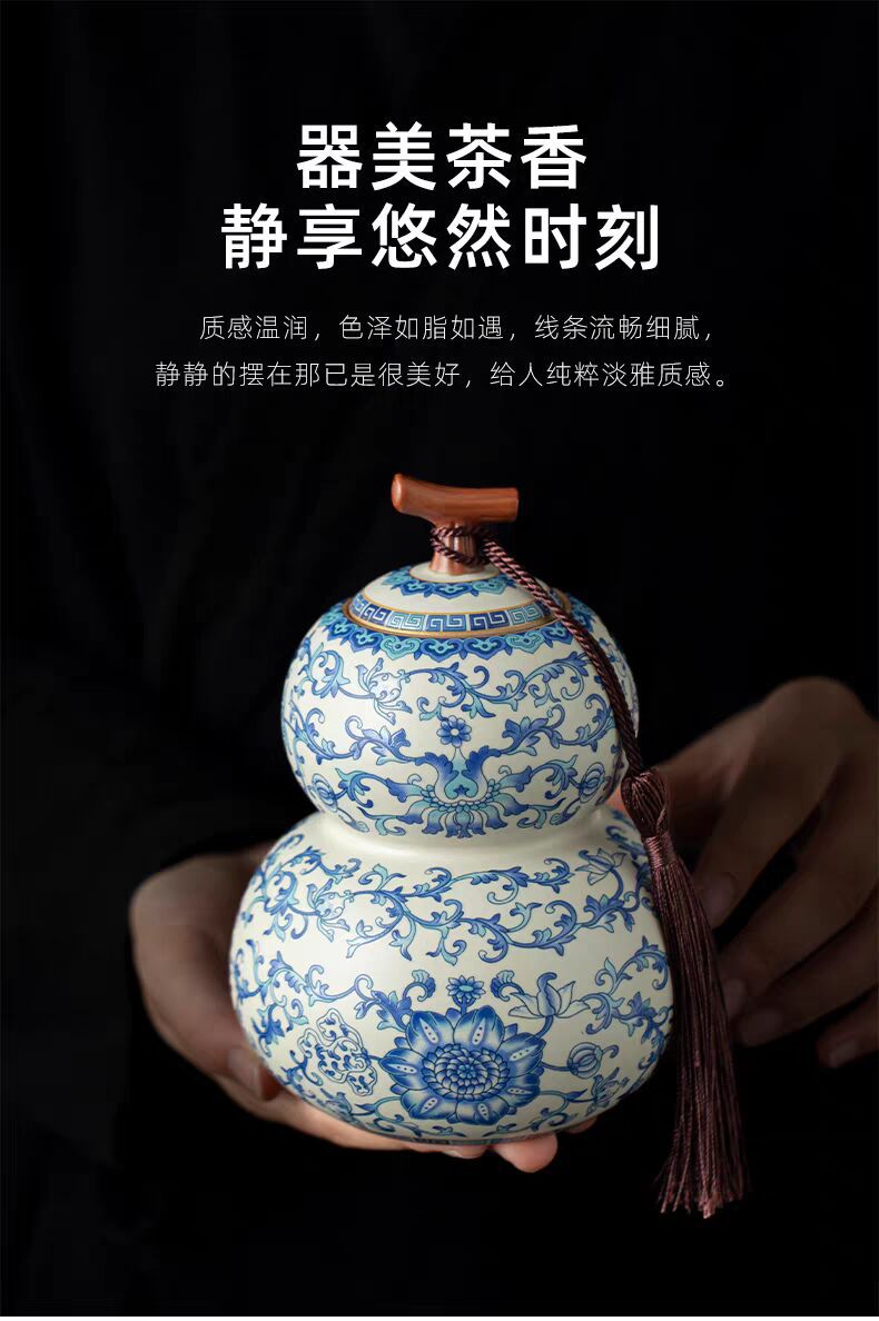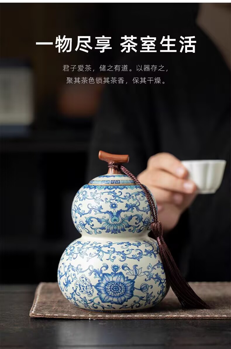 青花汝缠枝莲窑陶瓷茶叶罐大号葫芦储茶高档密封茶罐储存罐单罐
