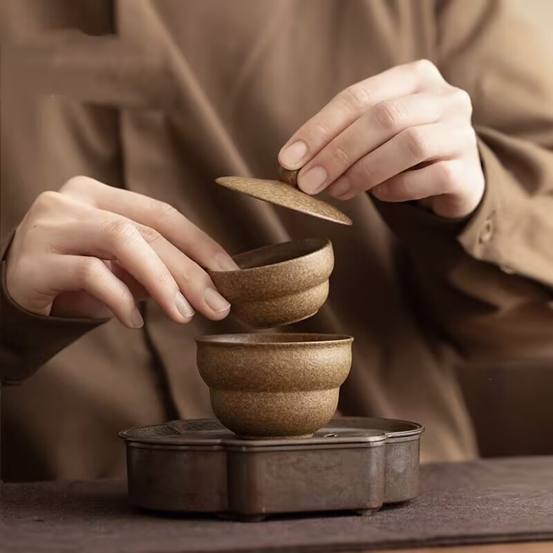 一人用蓋碗快客杯旅行シングル茶器セット粗陶一壺一杯ビジネスお土産収納バッグ