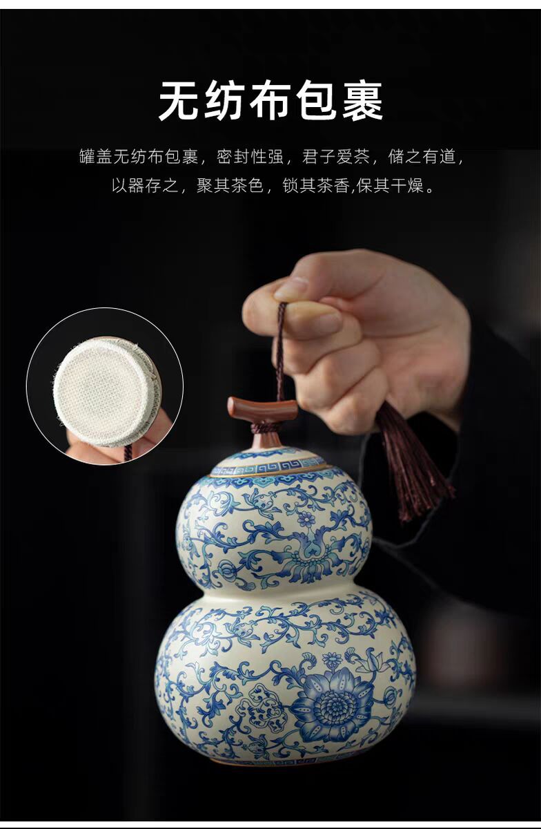 复古青花汝窑葫芦茶叶罐家用陶瓷密封储物罐便携茶仓高档伴手礼物