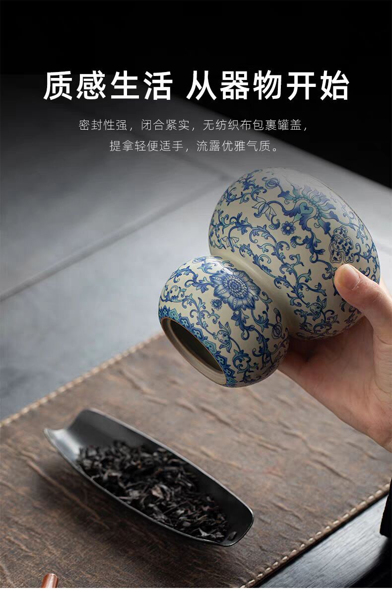 青花汝窑陶瓷茶叶罐精品高档绿茶白茶普洱茶防潮罐中式密封储存罐