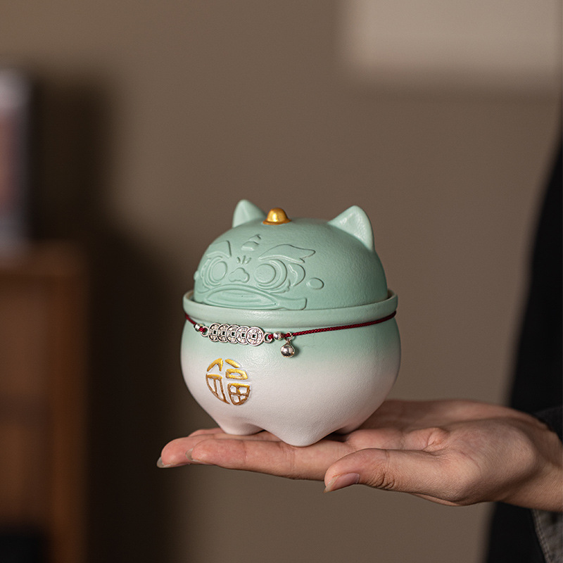 創意国潮覚醒獅子茶葉缶宮廷風招財置物家庭用密封缶キャンディー缶陶磁器缶お土産