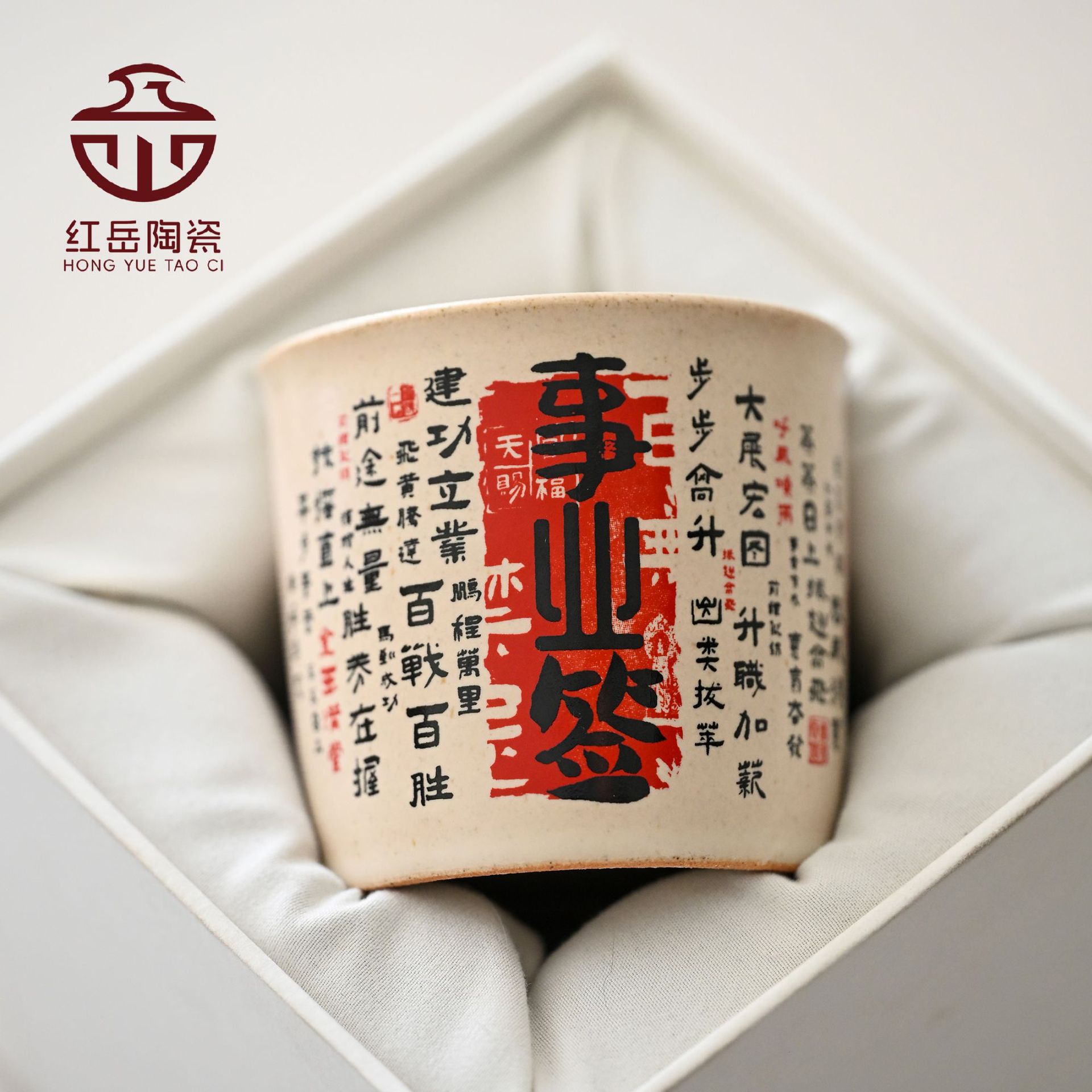 主人の杯の大容量の個性の杯の汝窯の草の木の灰の手書きの署名の事業は幸運に署名してコーラの杯のカップに署名します。