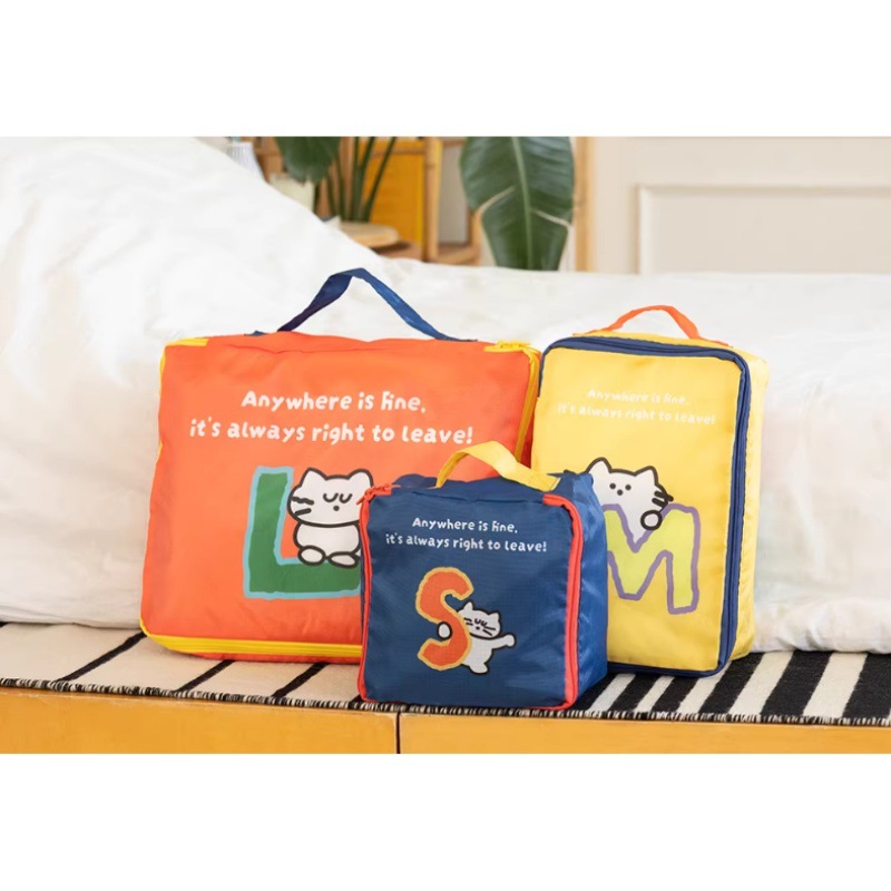 韩系新款可爱猫咪旅行收纳包多巴胺衣物整理分装袋袋行李包五件套