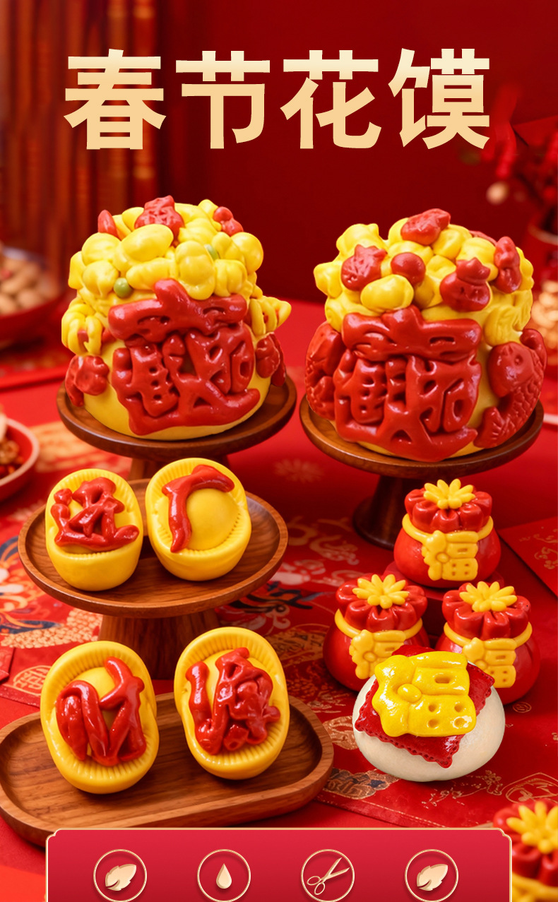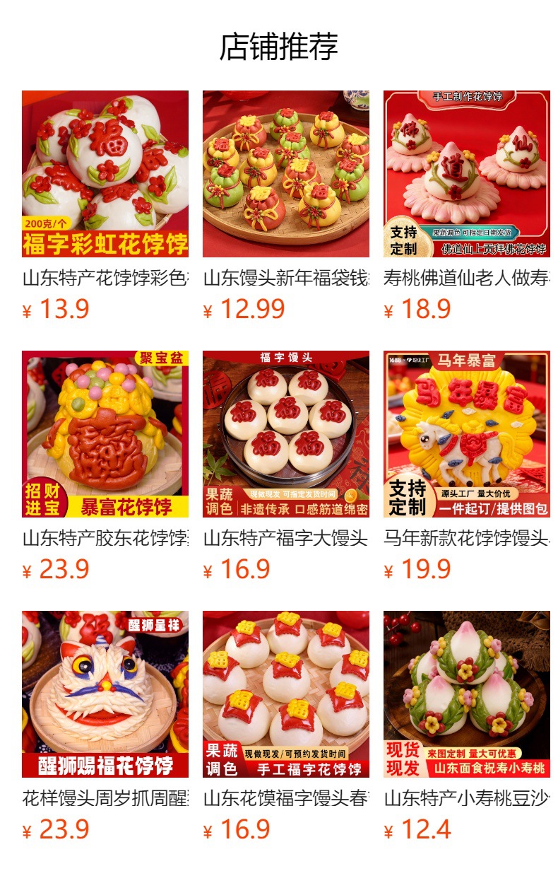 马年新款花饽饽馒头马上暴富新年快乐上供花馍拜拜用中式面点批发