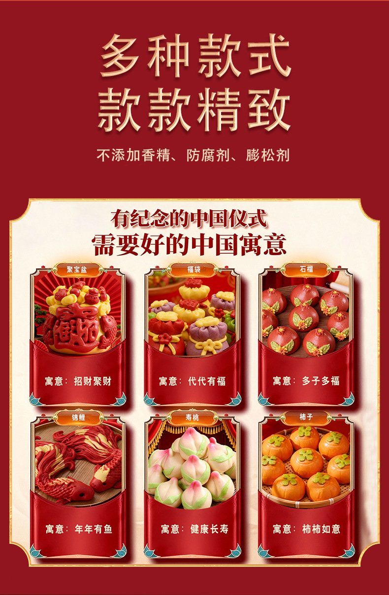 山东特产花饽饽彩色福字馒头新年过年花馍馍馒头春节送礼面点年货