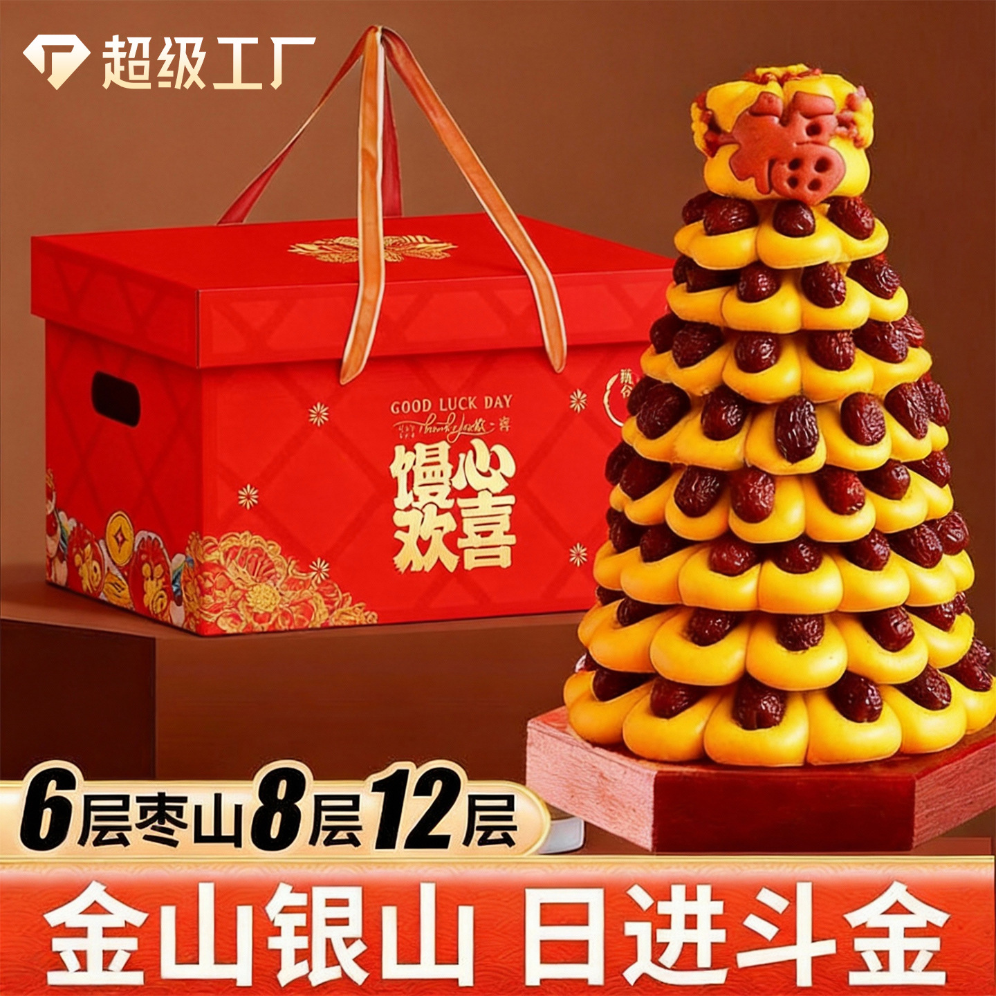 山东特产花饽饽金山银山面点春节祝寿上供祭拜红枣花馍礼盒批发