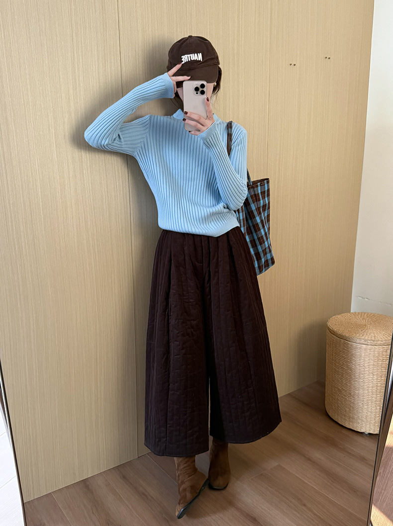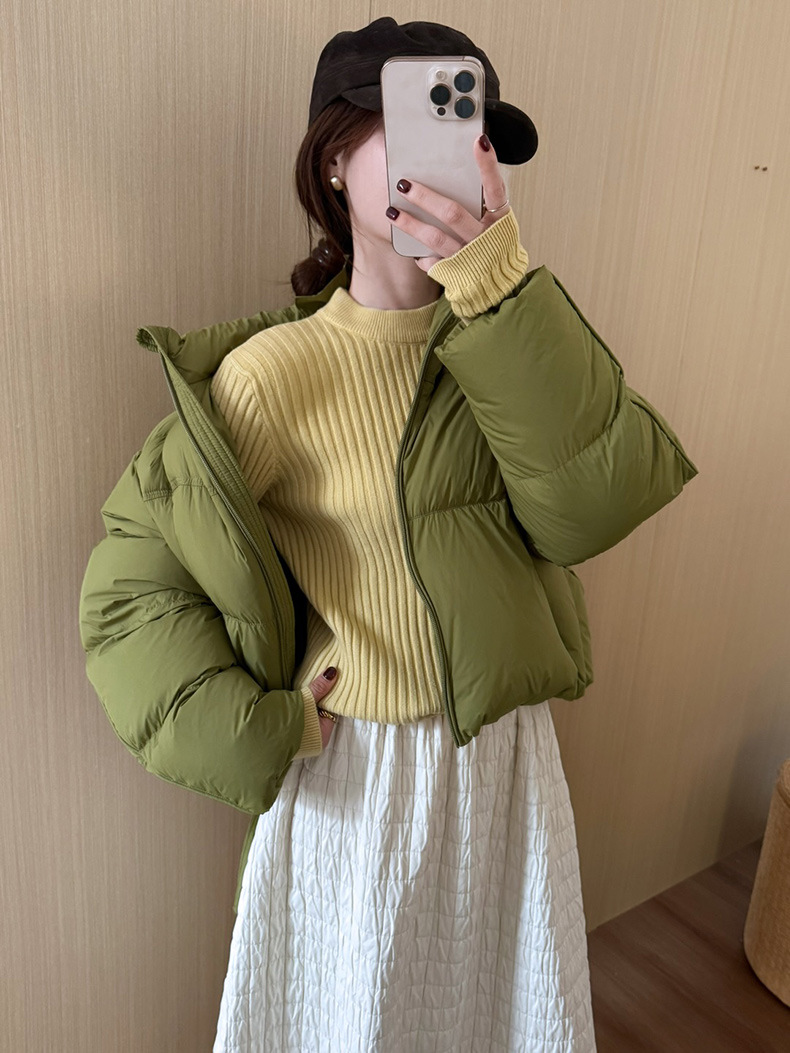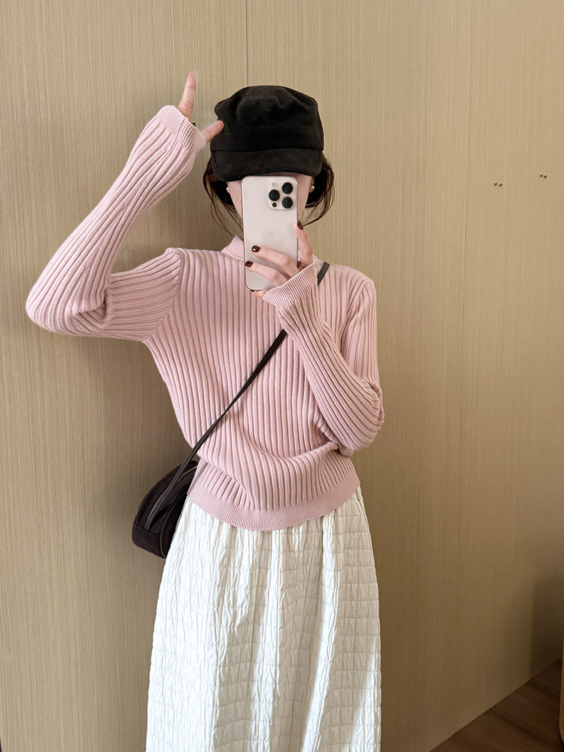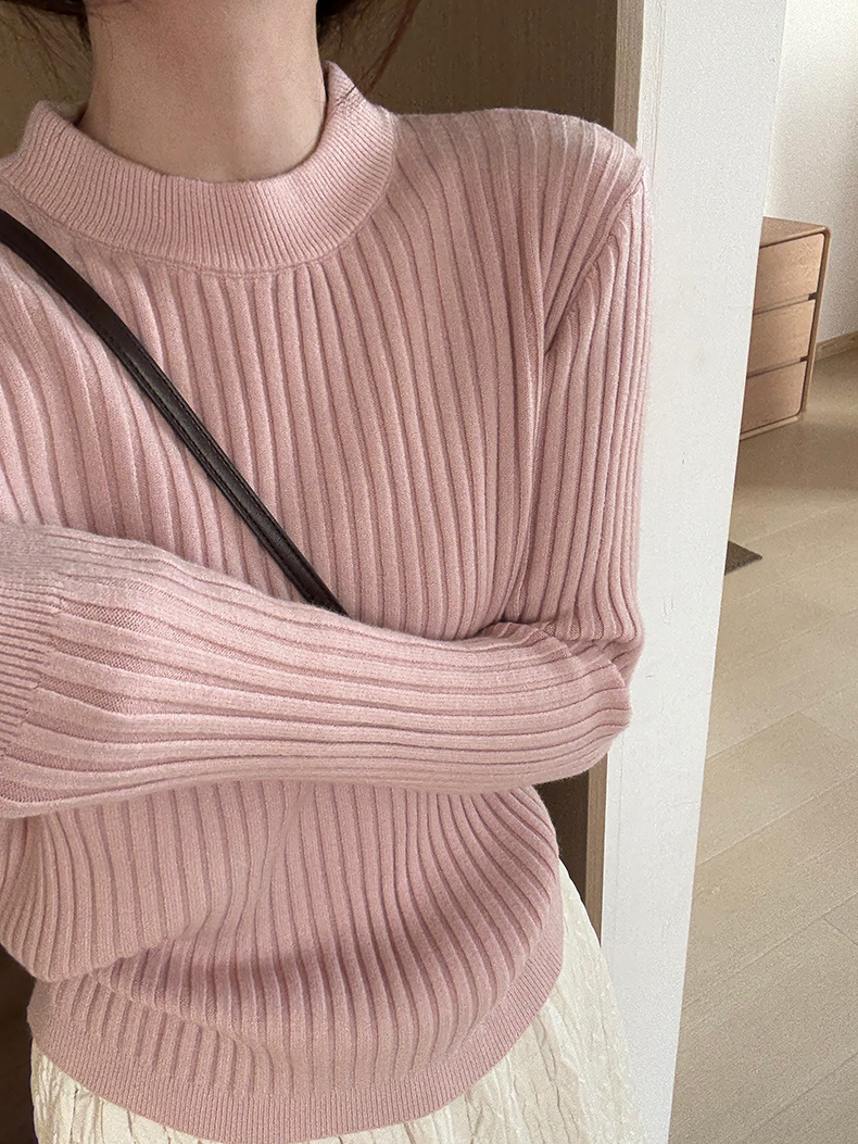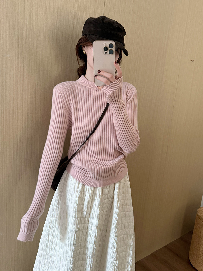 小立领奶fufu软糯针织长袖打底衫女春秋冬季加厚毛衣简约上衣内搭