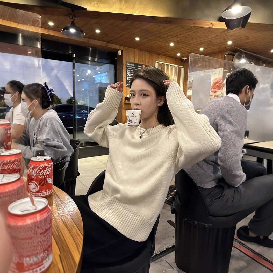 韩版圆领纯色内搭宽松针织打底衫秋冬季2025年新款百搭长袖毛衣女