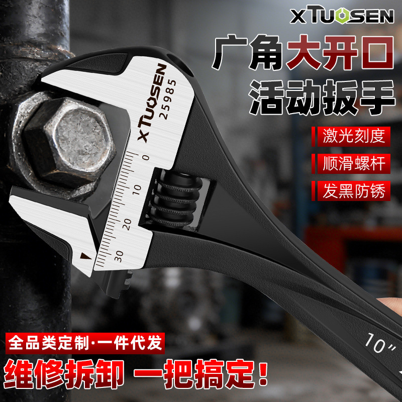 拓森五金手动扳手工具万能高硬度活口扳手多功能大开口活动扳手