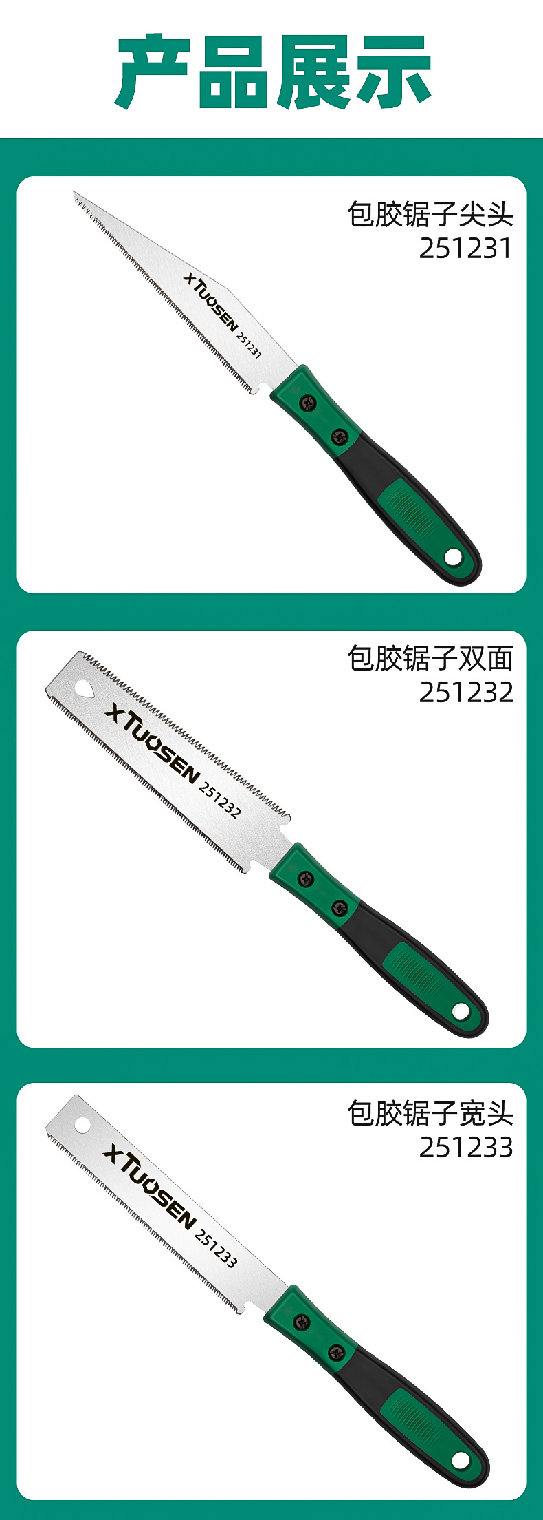 规格 251231,包胶锯子尖头,0.07kg,251233,包胶锯子宽头,0.08kg,251232,包胶锯子双面,0.08kg