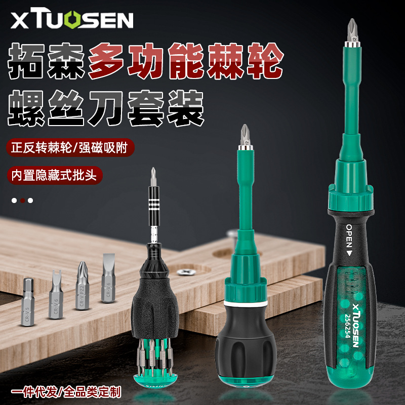 拓森多功能异型螺丝刀工具套装一字十字螺丝批头棘轮螺丝刀套装