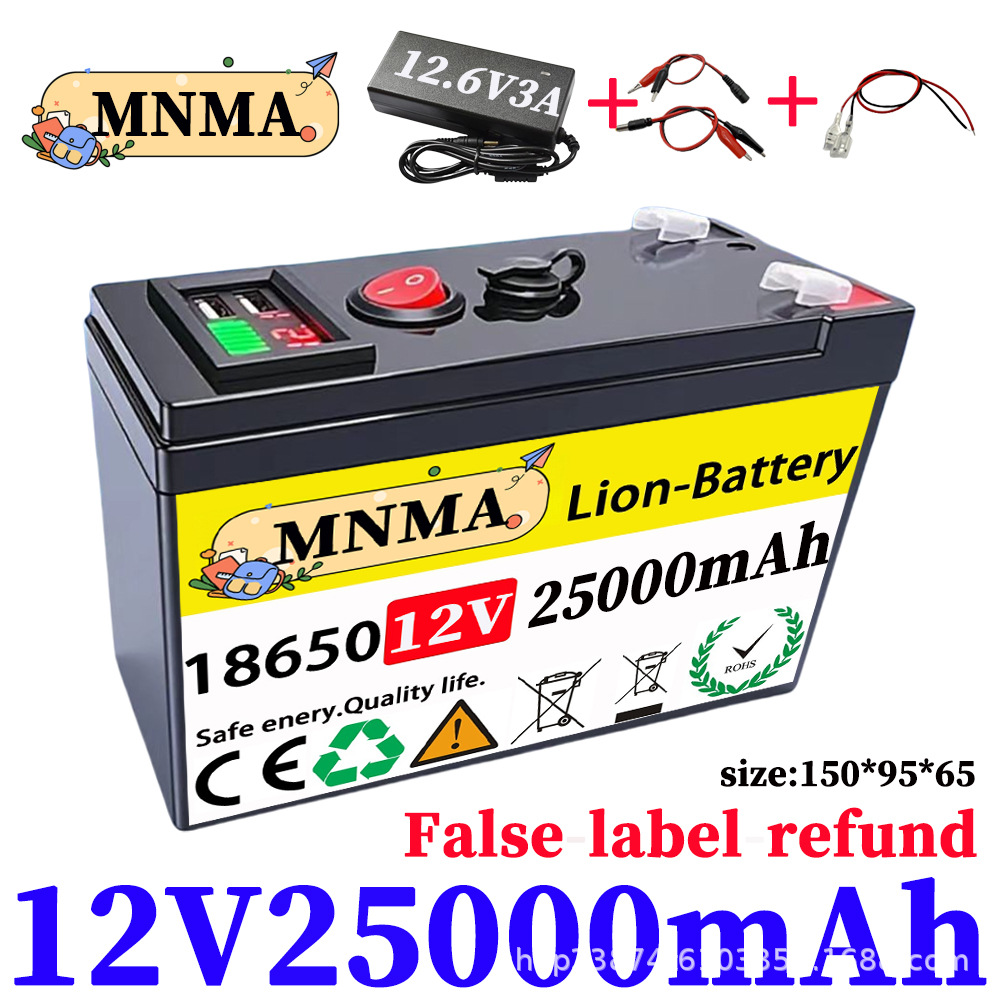 12V 120000MAh电源组和可充电18650电池,内置5V 2.1A USB电源显示充电端口,带+12.6V充电器