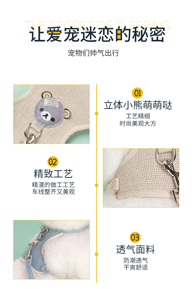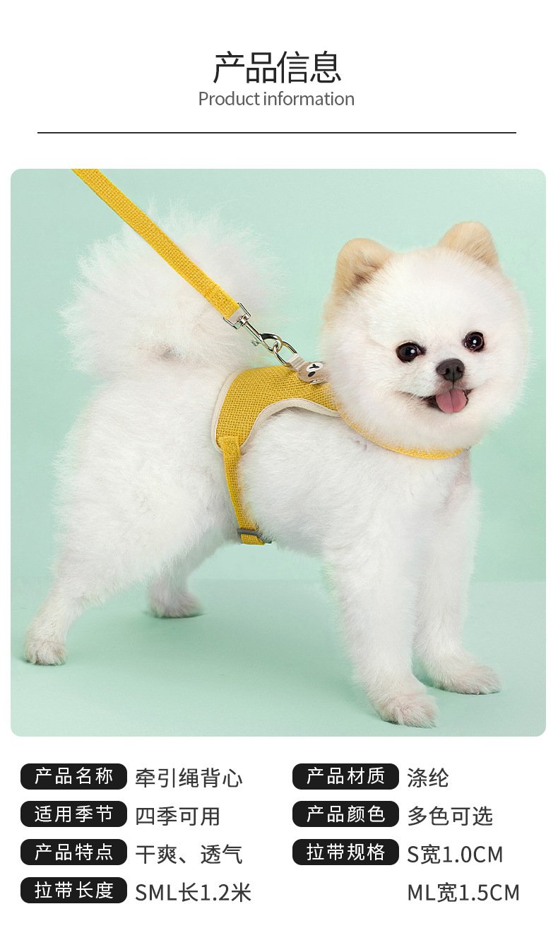 宠物用品背心式狗狗牵引绳泰迪比熊中小型犬胸背带猫咪遛狗绳厂家