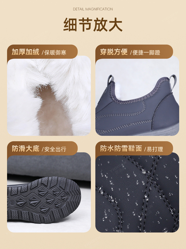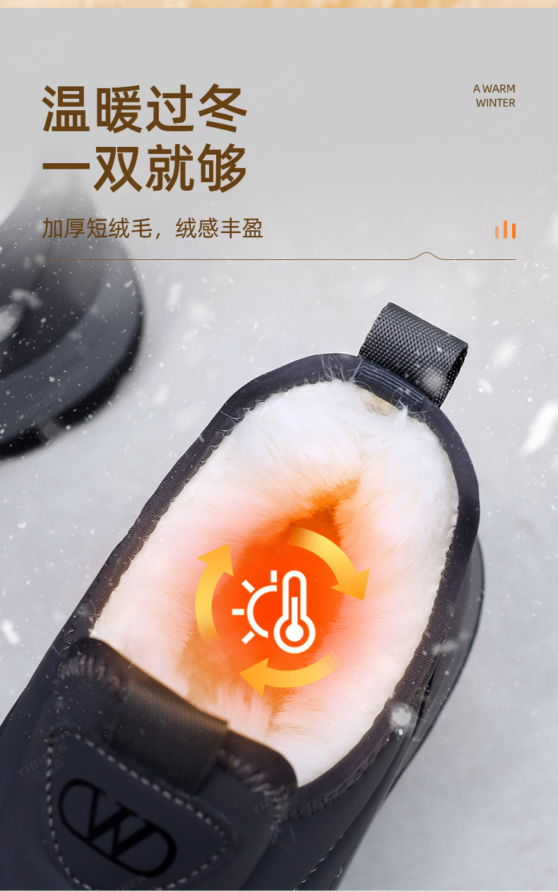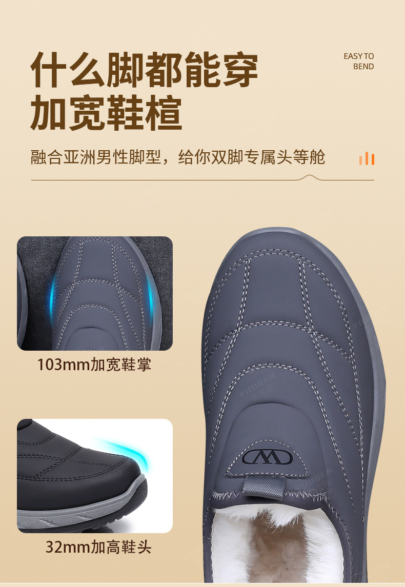 冬季新款加绒加厚保暖中老年爸爸鞋防滑软底一脚蹬棉鞋防寒雪地靴